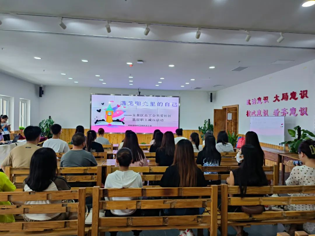 为进一步提升职工群众心理健康水平,提升工会普惠服务效能和职工心理健康意识,帮助职工及时疏导情绪、缓解压力,构筑社会心理防线,发挥工会桥梁纽带作用助推基层治理工作。近日,玉泉区总工会在玉泉区党群活动中心开展“遇见阳光里的自己”关爱社区基层职工减压心理辅导活动,活动特邀呼和浩特市心港湾心理健康服务中心三级心理咨询师刘洋云老师,为大家进行心理调节,减压放松,鼓励大家用更好的心态来面对工作和生活。