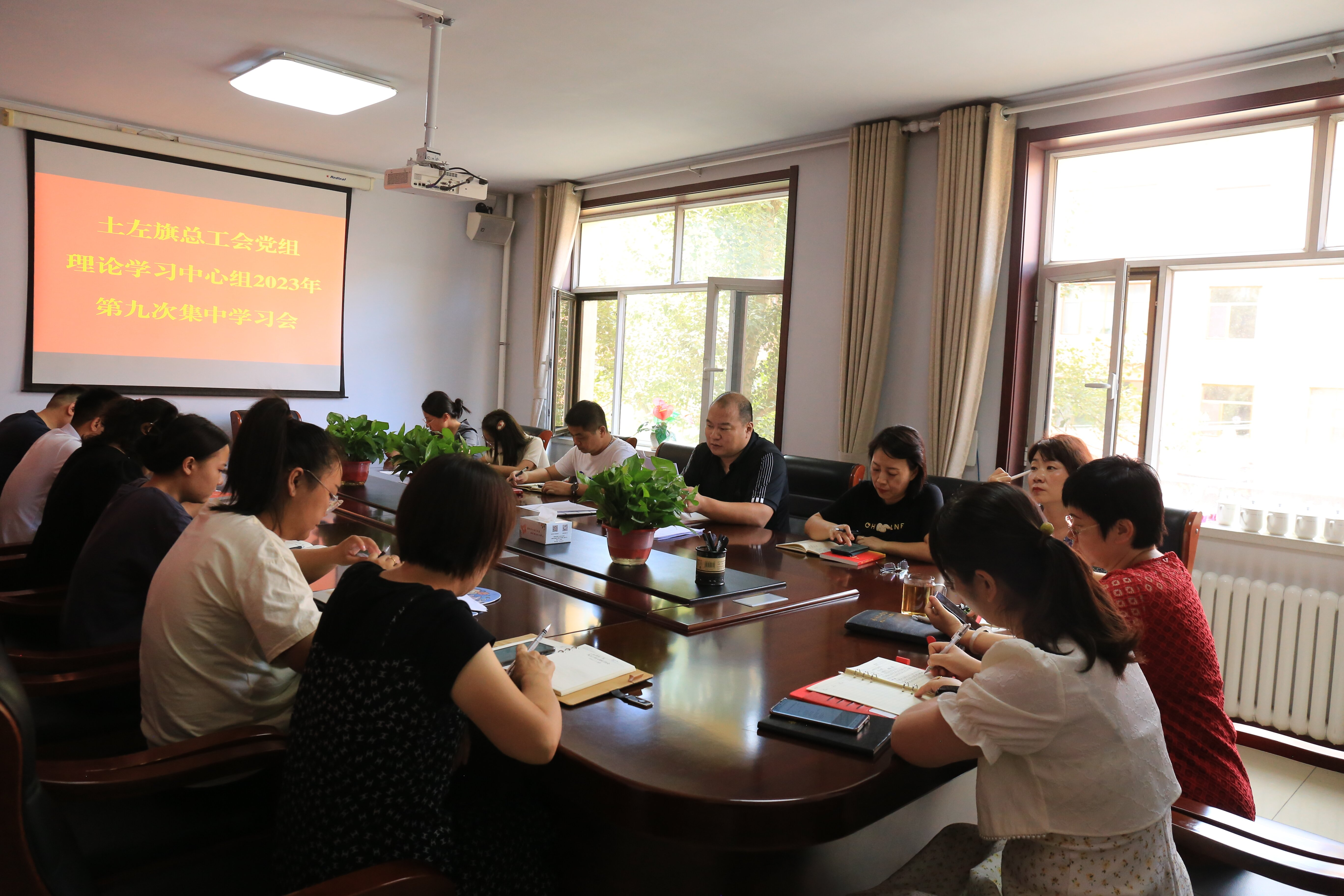 7月25日下午,土左旗总工会党组理论学习中心组在二楼会议室召开2023年第九次集中学习会议。旗总工会党组书记、常务副主席伊赫主持会议,机关全体党员干部参加会议。