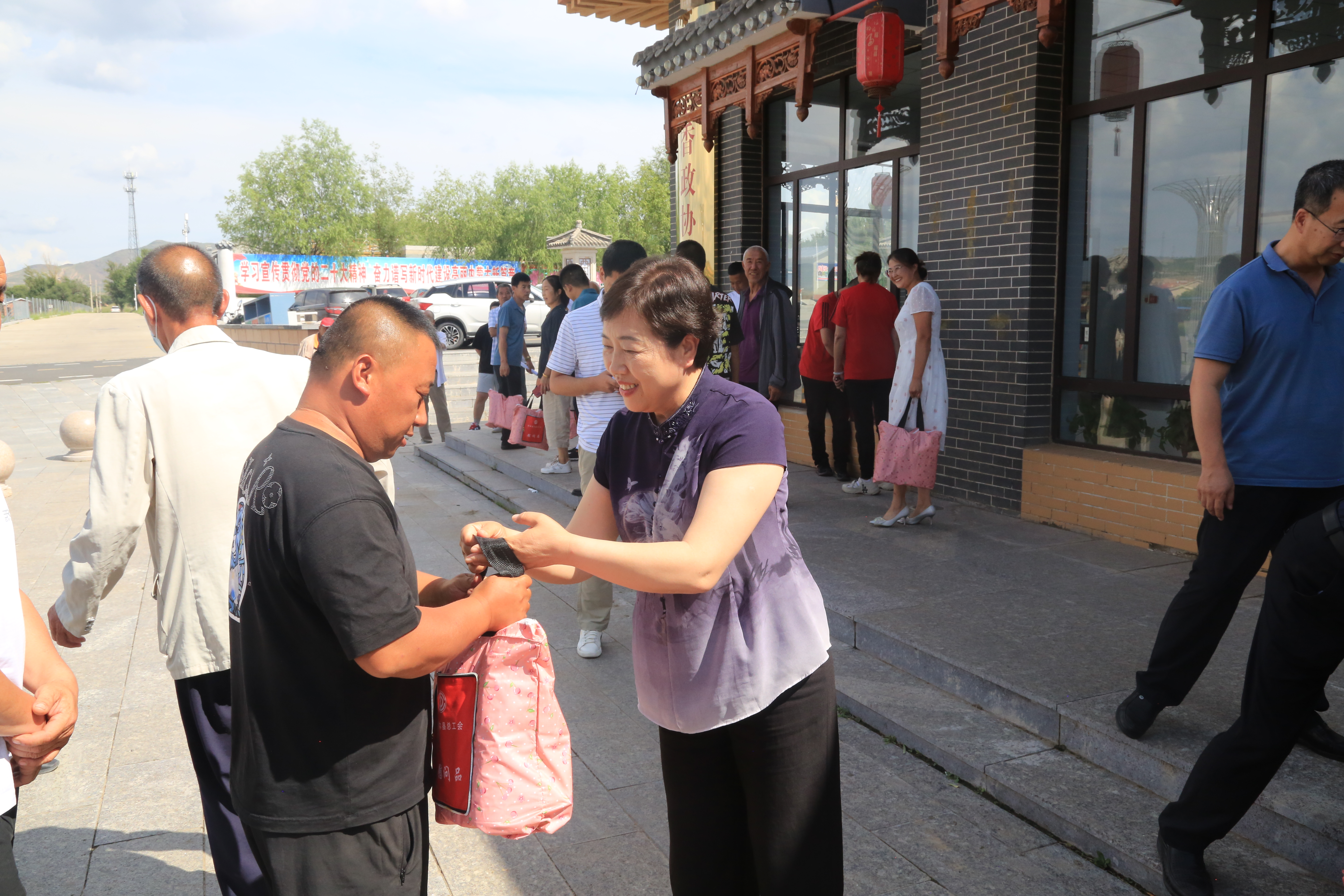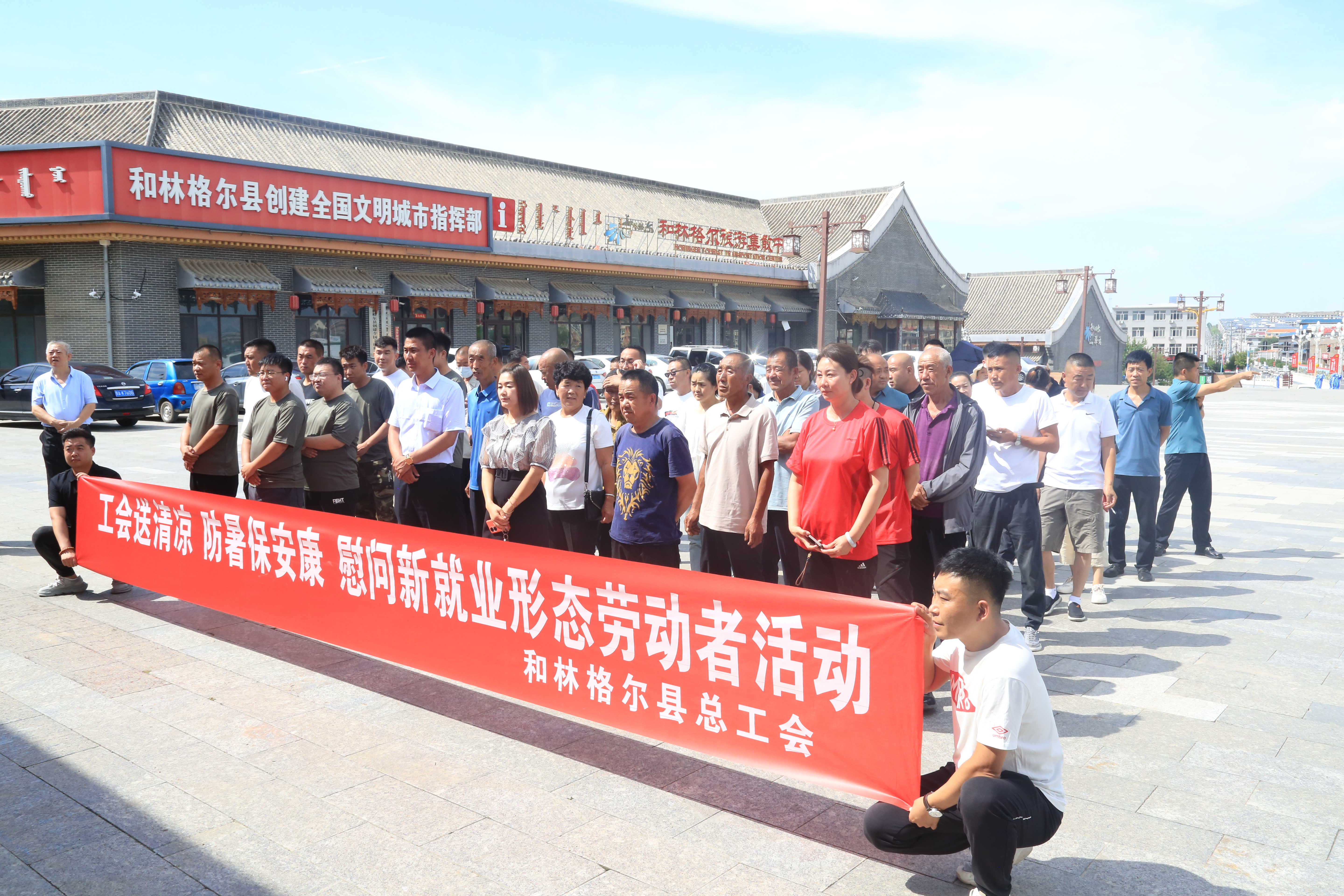7月28日,市政协工会界、和林县政协、和林县总工会联合开展“工会送清凉 防暑保安康”慰问新就业形态劳动者活动。为在高温天气下坚守在一线的新就业形态劳动者送去党和政府的关怀与慰问。市政协提案委履职党支部书记、主任侯兰英,市政协提案委党支部副书记、副主任李志刚,和林县政协党组书记、主席王来柱,和林县政协党组成员、副主席马俊伟,和林县总工会党组书记伊俊文出席活动。