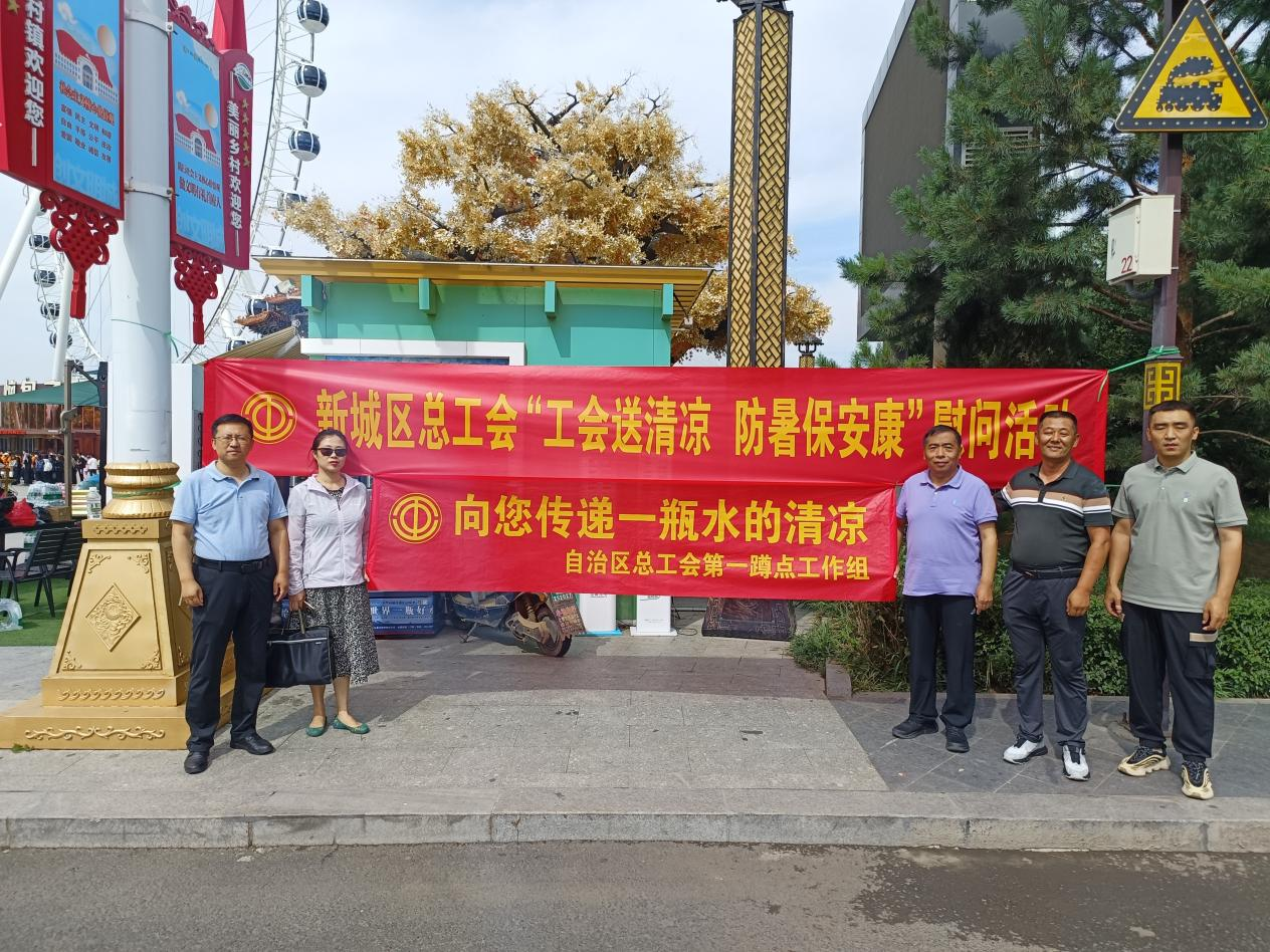 为保障户外劳动者高温作业的身体健康和安全,7月28日至30日,自治区总工会第一蹲点工作组赴新城区保合少镇恼包村,开展“向您传递一瓶水的清凉”活动,为在高温下奋战的劳动者送上一份清凉,奉献一份爱心。