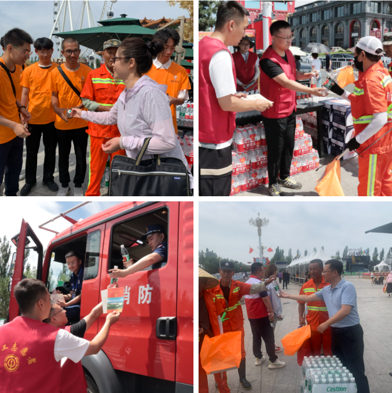 这个炎热的夏季里,环卫工人、消防人员、交通民警从未离开劳动岗位,广大劳动者依旧活跃在灼热的街头巷尾。为了向这些高温下的户外劳动者致敬,工作组在恼包村设立服务站点,为他们免费提供瓶装饮用水,让一线职工在高温天气下感受到了一丝清凉,并向他们送上亲切问候,叮嘱他们在高温天气做好自身防护、注意防暑。
