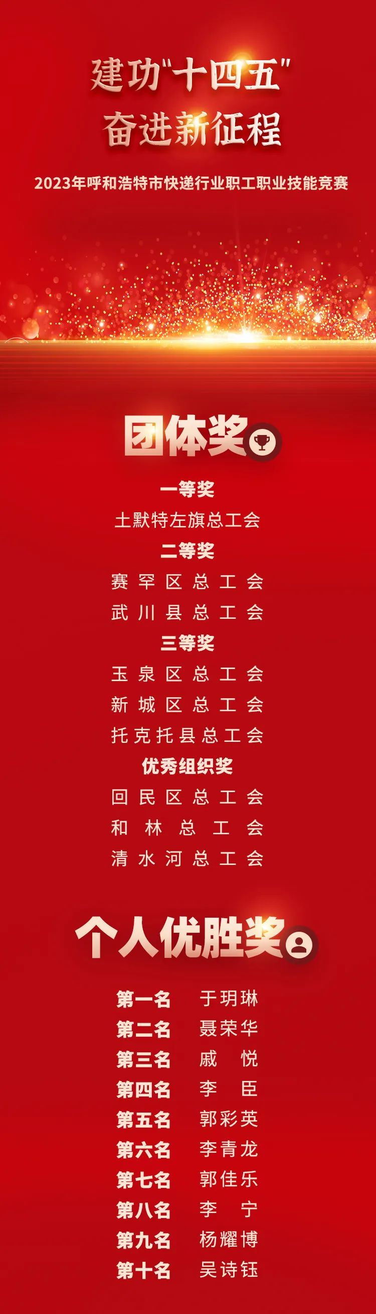 个人优胜奖共计10名