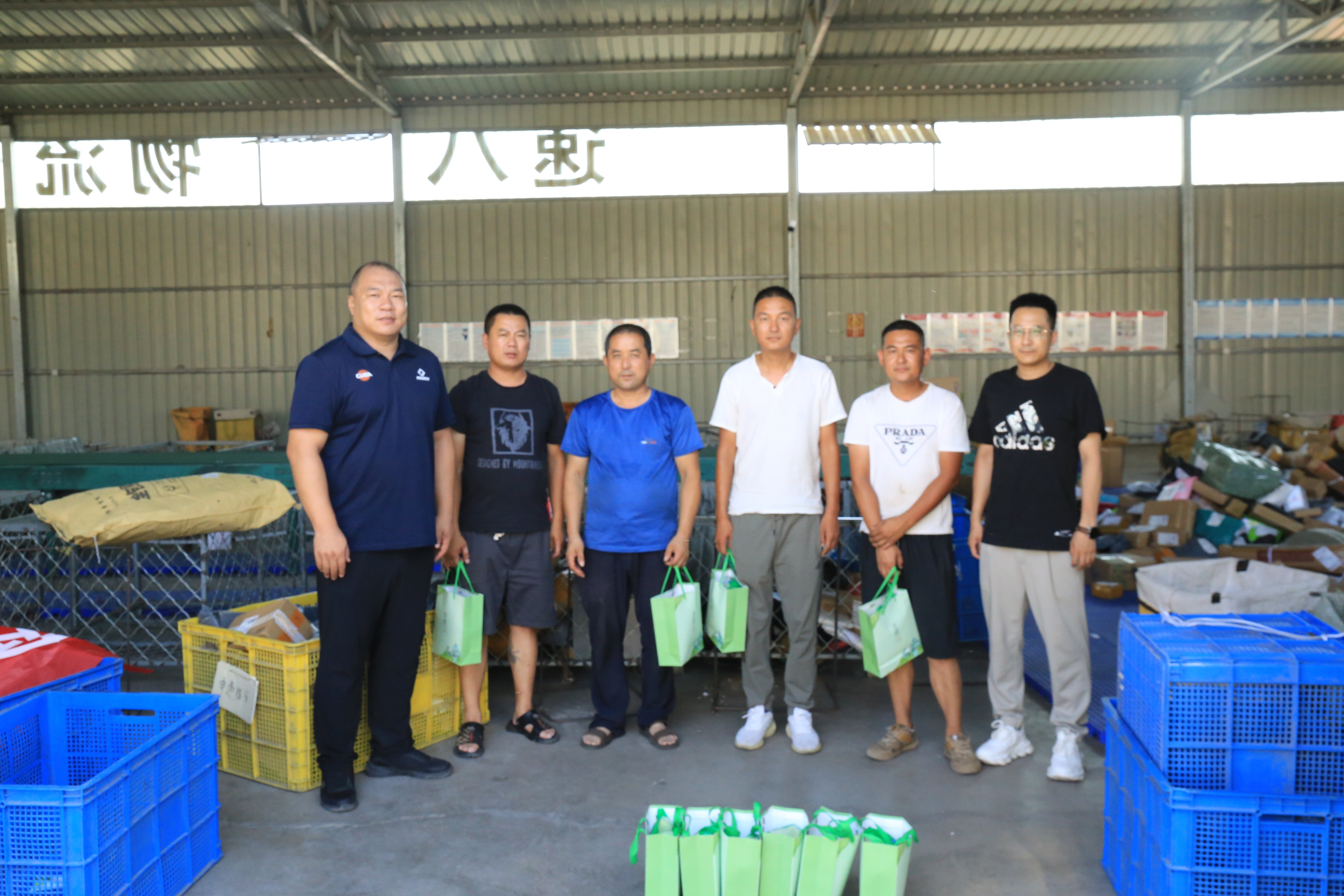 慰问组一行先后来到土左旗察素齐镇上户外劳动者站点、美团外卖、土左旗城投供水有限责任公司和快递物流仓储中心,为518名一线职工送上了绿豆、黑米、防晒帽、冰袖等防暑降温物品。