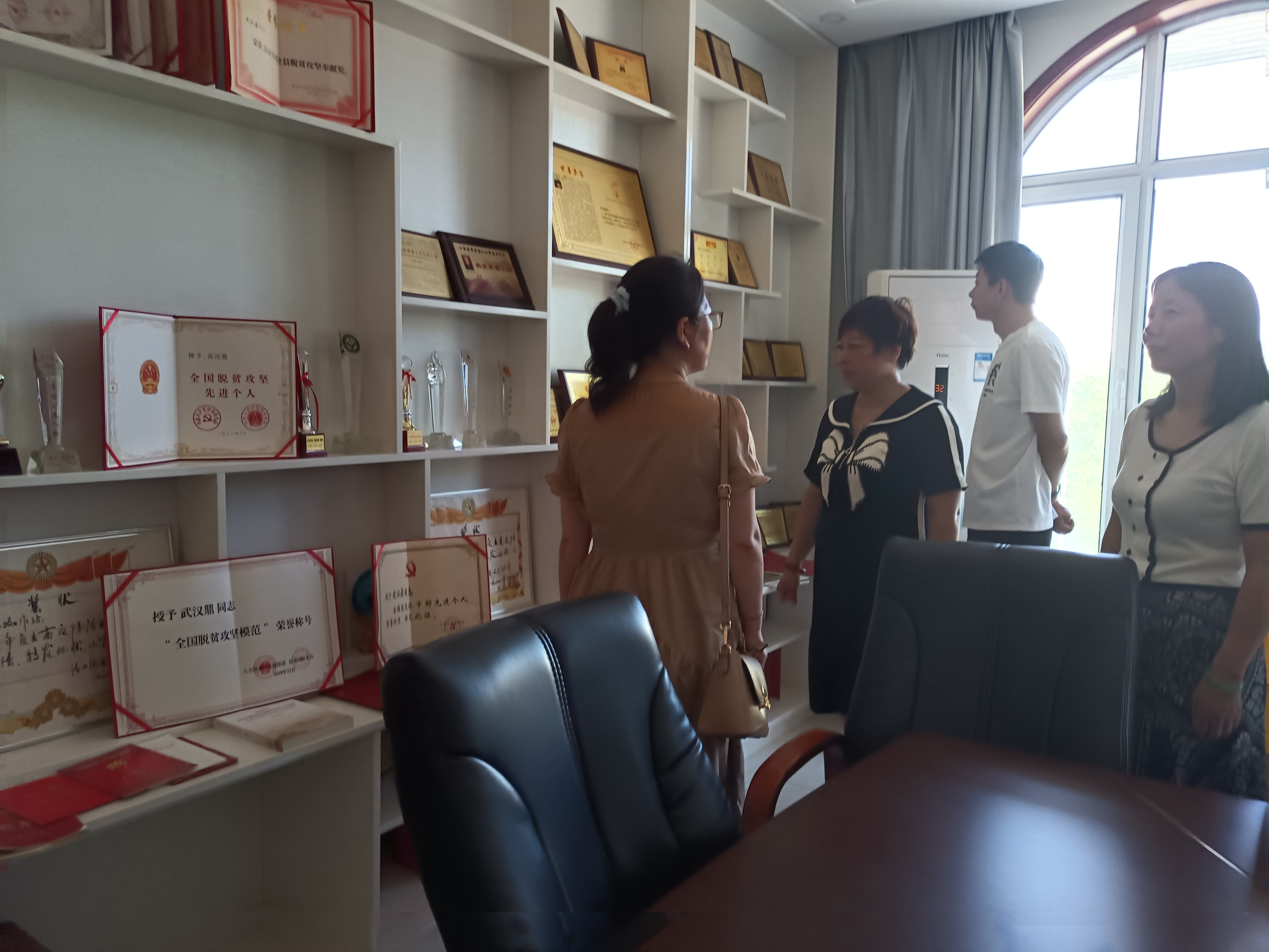 接着,全体党员干部走进武汉鼎工作室参观了关于武汉鼎“永远的旗帜”。社区工作人员宣讲了武汉鼎老人的感人事迹以及获取的荣誉等,通过榜样精神讲好民族故事。武汉鼎的扶贫事迹,得到各级党和政府的充分肯定,先后受到国家部委、自治区、盟市、旗县的表彰奖励230余次。每一次奖励,都是武汉鼎前进的动力,他也十分珍惜这些荣誉,完好地保存在武汉鼎工作室里,激励着一代又一代的清水河人为改变家乡面貌不停奋进。