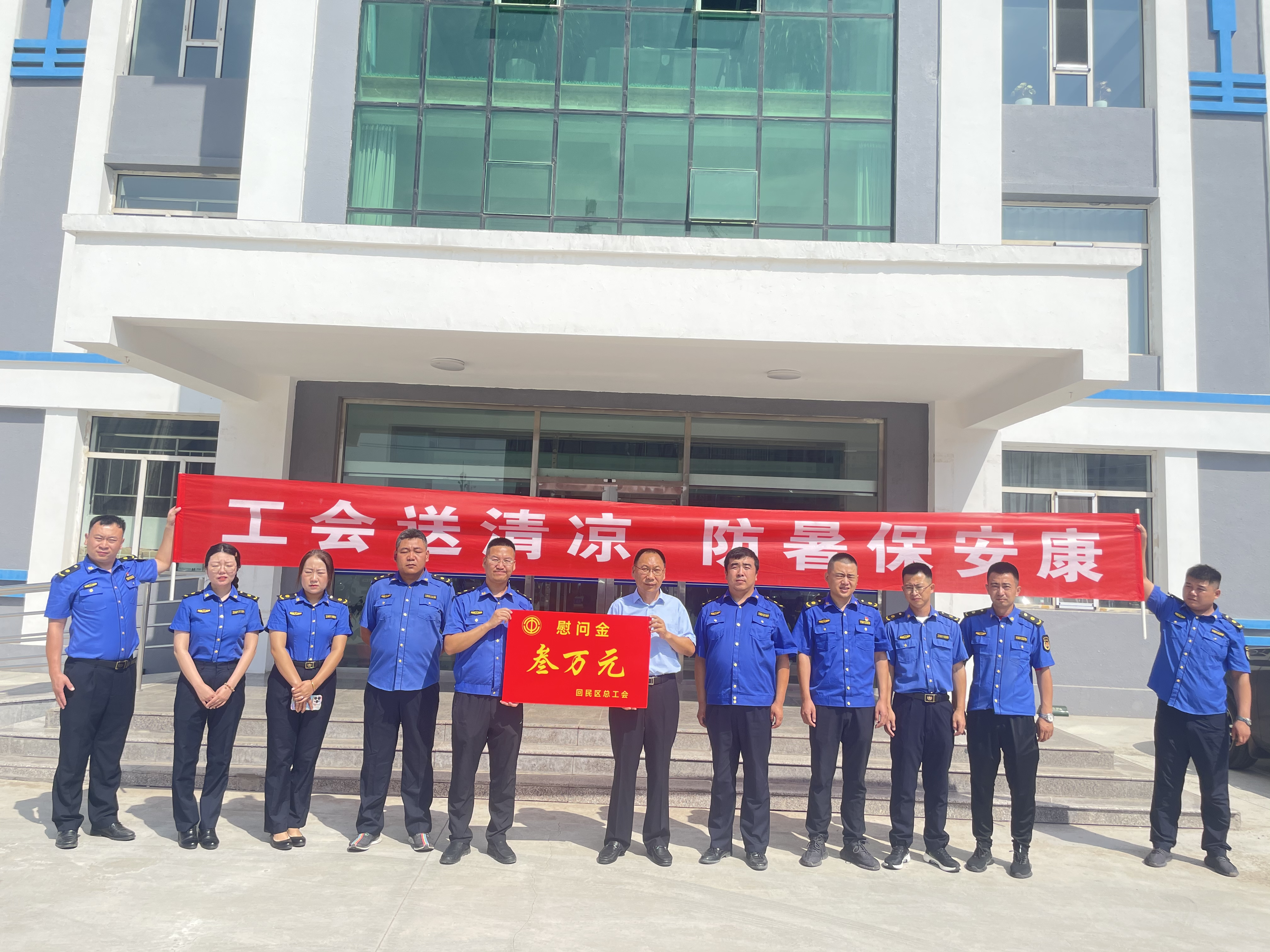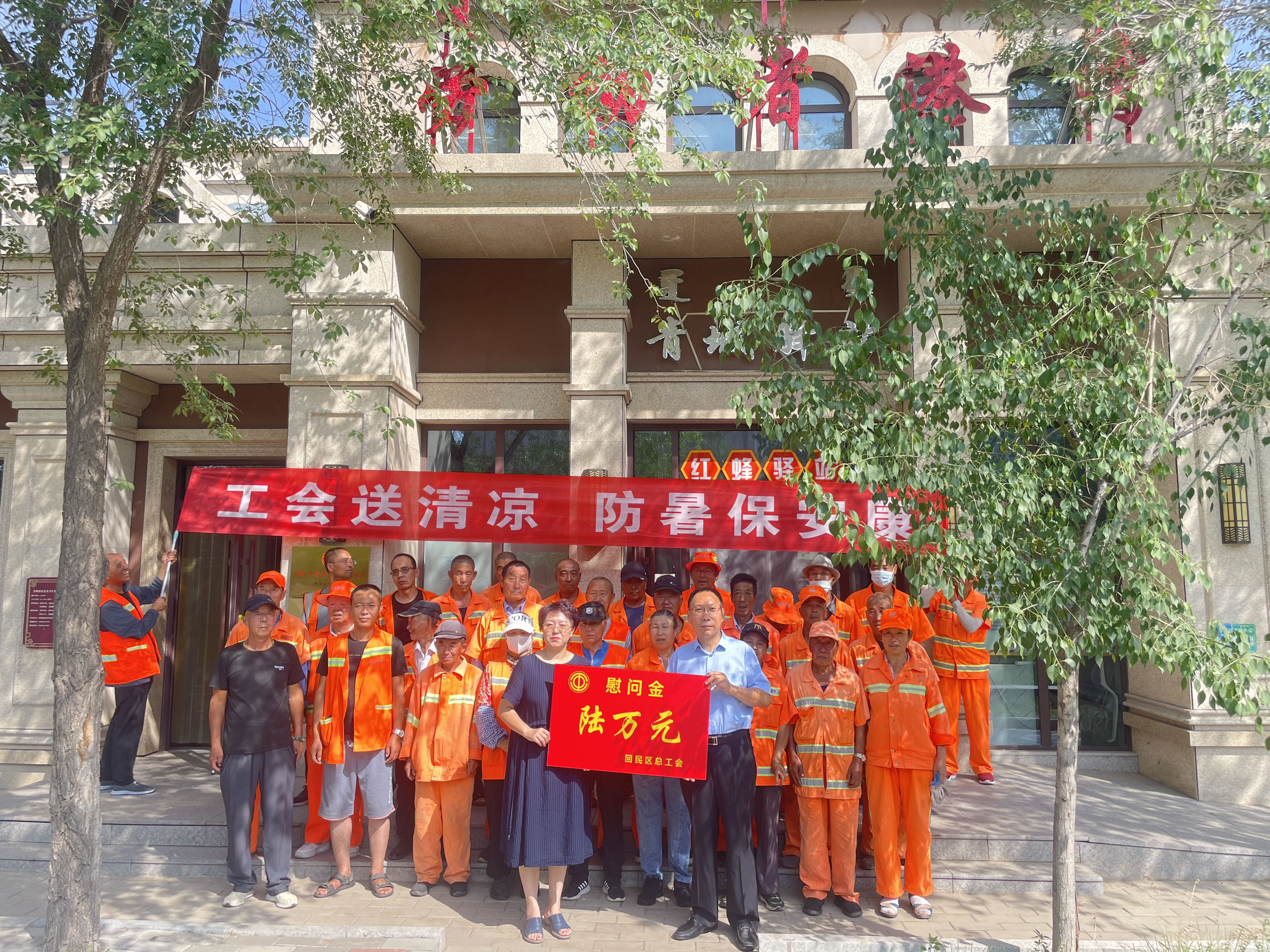 为深入学习贯彻习近平总书记考察内蒙古重要讲话精神,切实保障高温环境下一线职工的身体健康和生命安全, 8月9日,回民区总工会深入回民区环卫局、回民区城市管理综合执法局、回民区市场监督管理局等单位开展2023年“工会送清凉 防暑保安康”慰问活动,为高温天气下奋战在一线的职工送去党和政府的关怀与慰问。