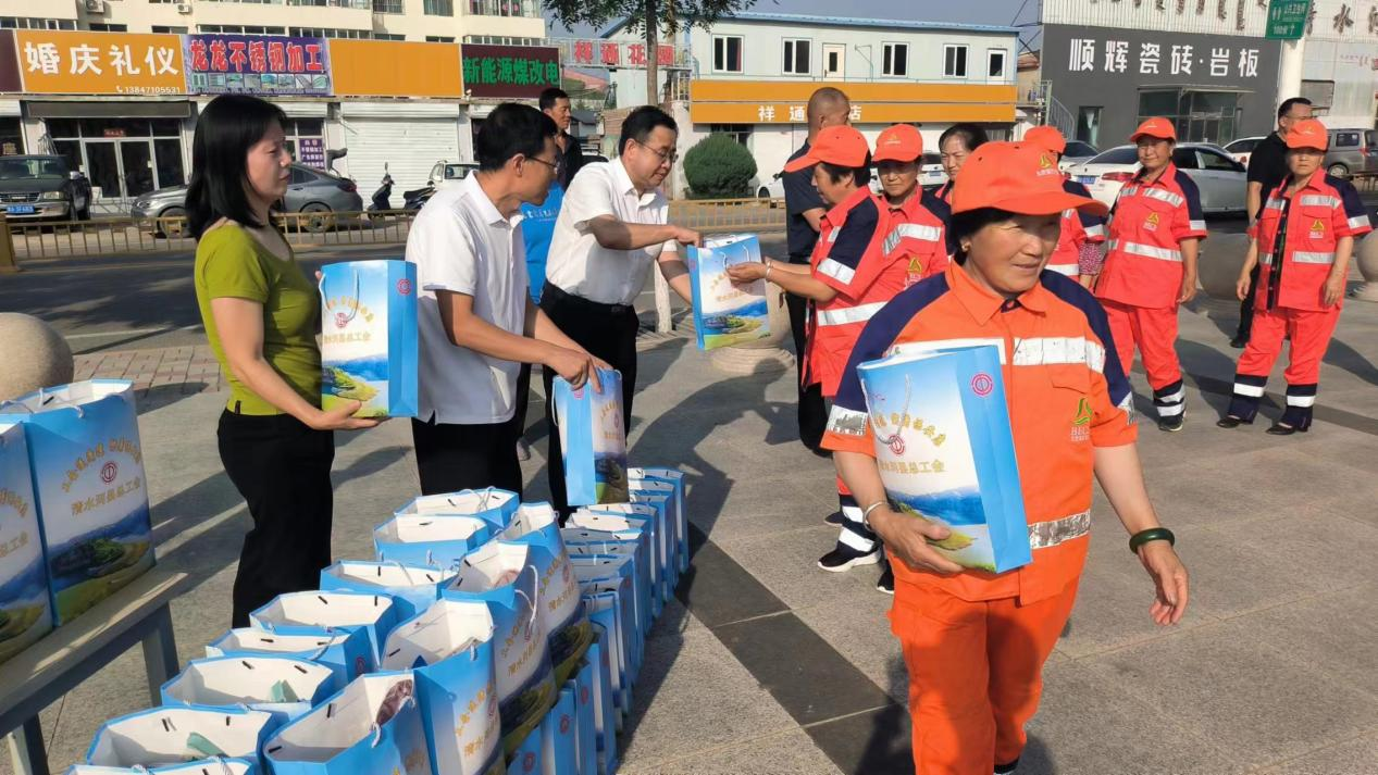 为关心关爱高温一线劳动者,保障职工的身体健康,切实把防暑降温工作落到实处。8月10日,清水河县人大常委会副主任、县总工会主席刘在俊,清水河县总工会党组书记、常务副主席姜培成,县总工会副主席常俊兰一行深入一线,向高温下坚守岗位的环卫工人送去防暑降温品,向他们带去工会组织的关心关爱。值此正式启动清水河县总工会2023年“送清凉”慰问活动。