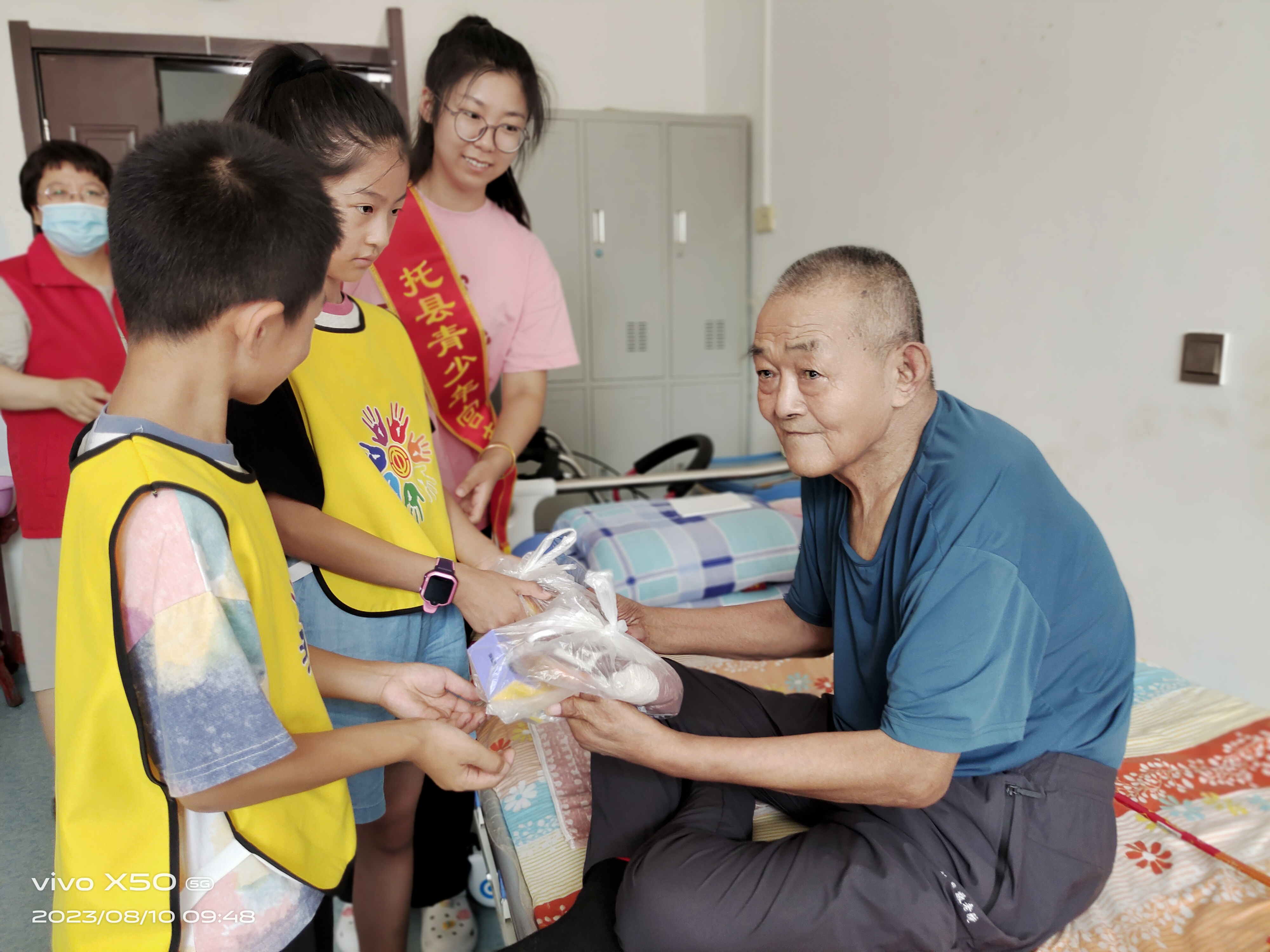 为进一步弘扬“奉献、友爱、互助、进步”的志愿精神,弘扬尊老敬老的中华民族传统美德。8月10日,托克托县总工会“爱心托管班”职工子女一行30余人走进托克托县双河镇敬老院开展志愿慰问活动。