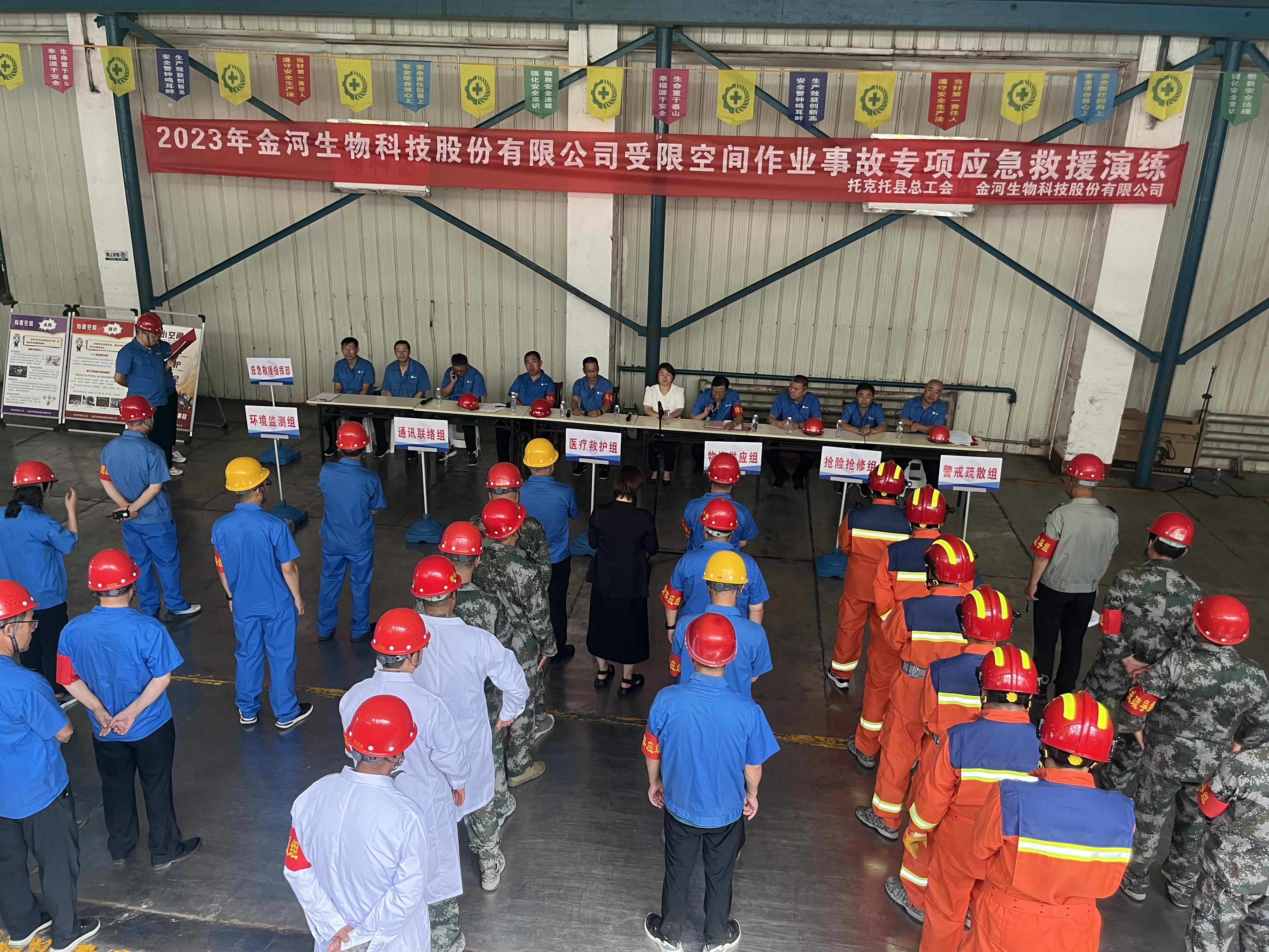 为进一步做好劳动保护工作,提升职工们安全事故应急自救能力,8月15日,托克托县总工会和金河生物科技股份有限公司工会联合举办了2023年受限空间作业事故专项应急救援演练。托克托县总工会副主席张小燕出席了活动。