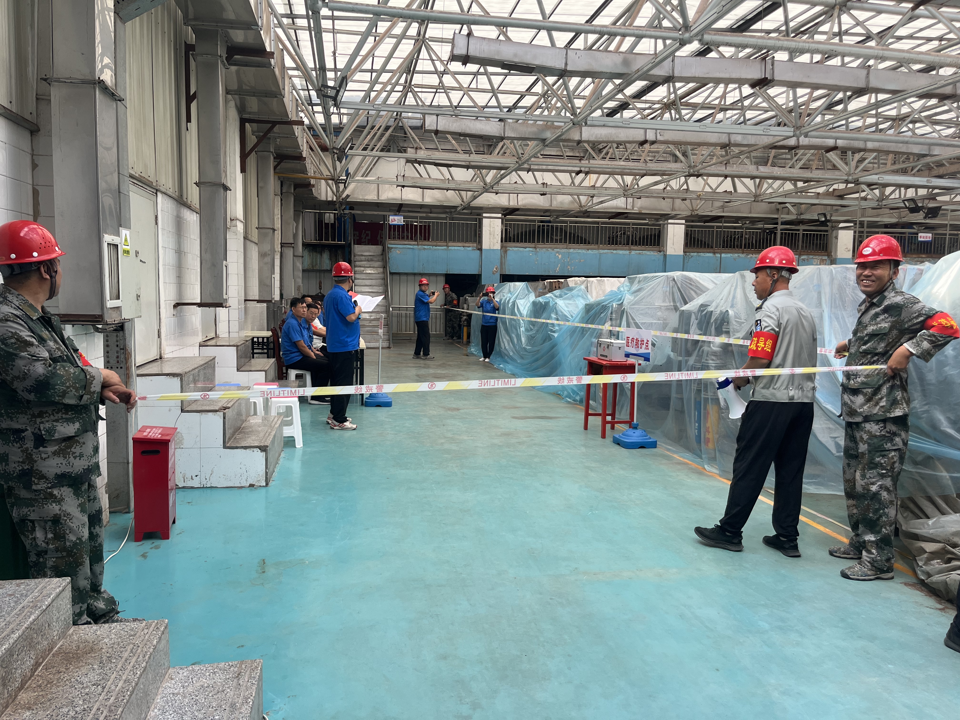 演练现场,从接到安全事故报告到总指挥发出现场警戒、抢修抢险、医疗救护、物资救援等救援指令,各环节衔接有序,分工明确。