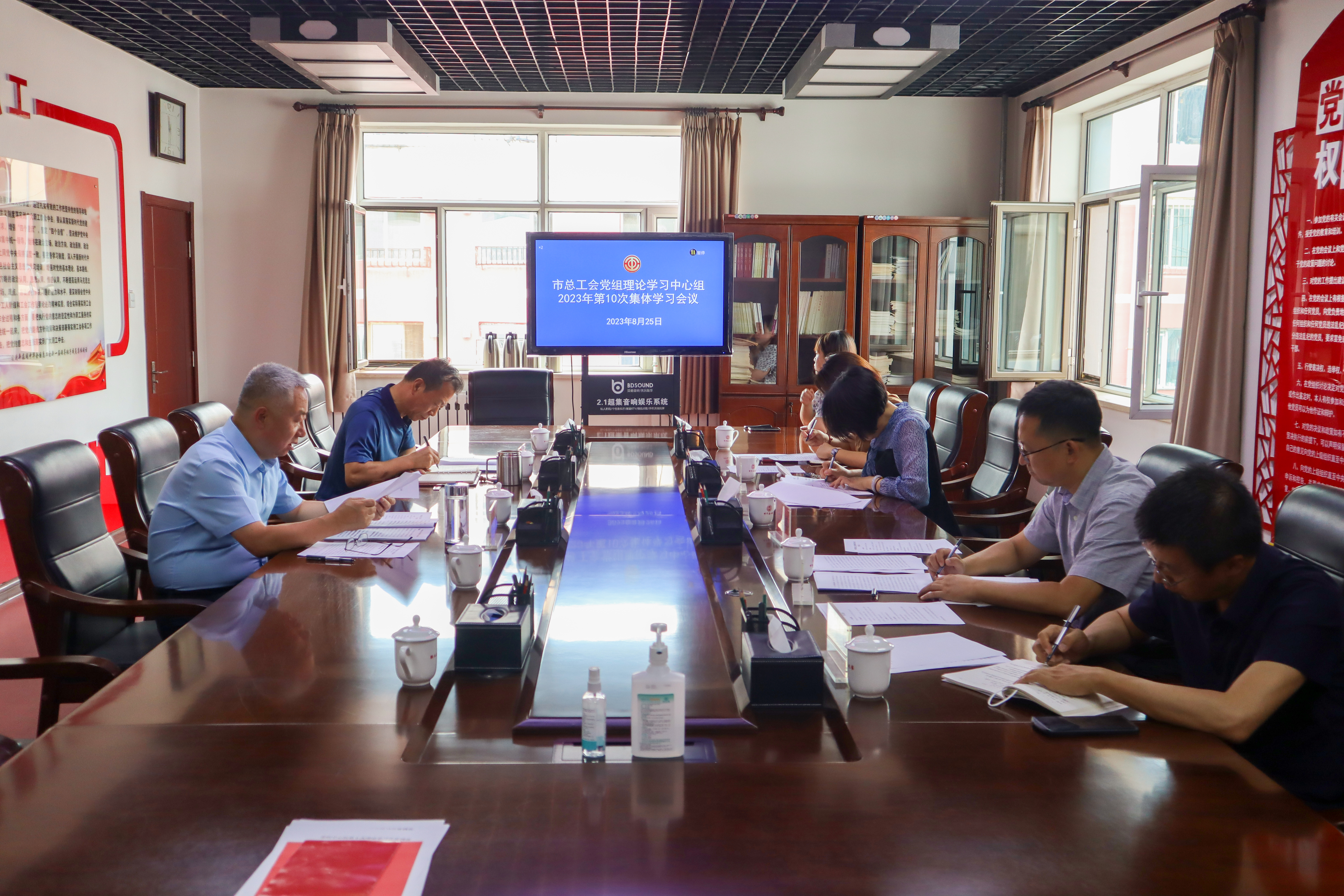 8月25日上午,市总工会召开2023年第10次党组理论学习中心组学习会议,市总工会党组书记、副主席汪俊亭主持领学,市总工会党组成员、副主席冀罕钢参加学习研讨。市总工会机关党总支专职副书记尉军,机关第一党支部书记杜健、第三党支部书记高利红及宣教部部长包静列席参会。