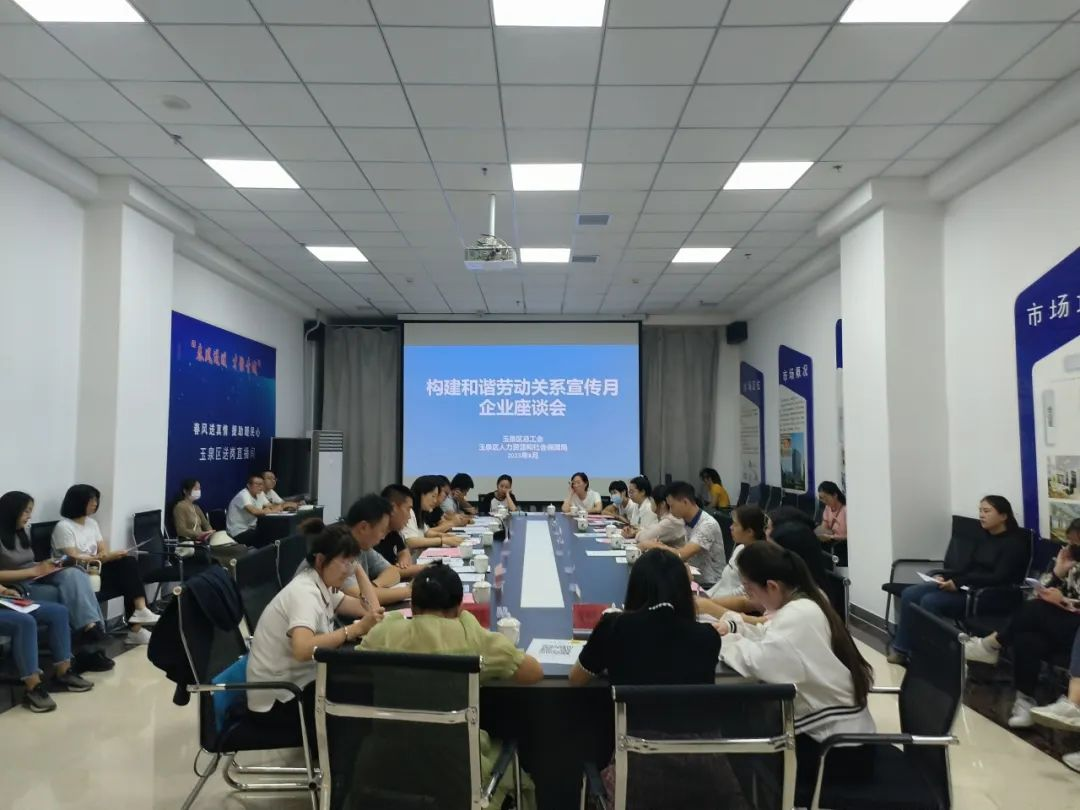 为践行习近平法治思想,规范劳动用工,促进全区劳动关系和谐稳定发展,形成劳动关系双方互利共赢、共商共建共享的和谐局面,切实增强企业学法、懂法、用法意识。8月30日,玉泉区总工会联合玉泉区人力资源和社会保障局在玉泉区劳动用工市场召开了“构建和谐劳动关系宣传月”企业座谈会。区属23家企业代表参会。