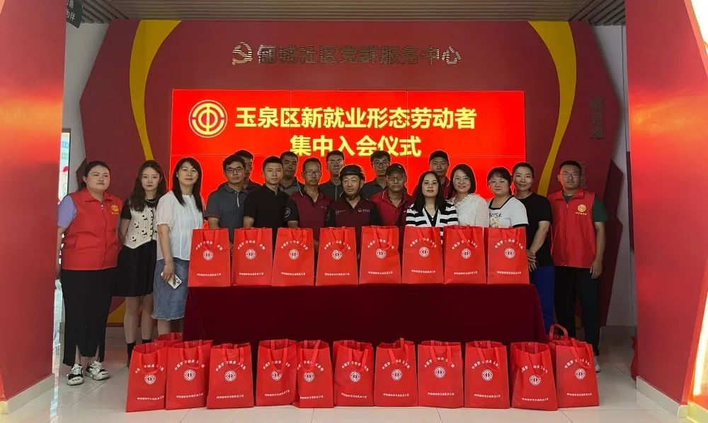 为进一步推进新就业形态劳动者服务保障工作,不断增强新就业形态劳动者的获得感、幸福感、安全感,9月1日,玉泉区总工会在俪城社区举办新就业形态劳动者集中入会仪式。来自顺丰、圆通、极兔等4个站点的68名快递员代表参加了此次集中入会仪式。