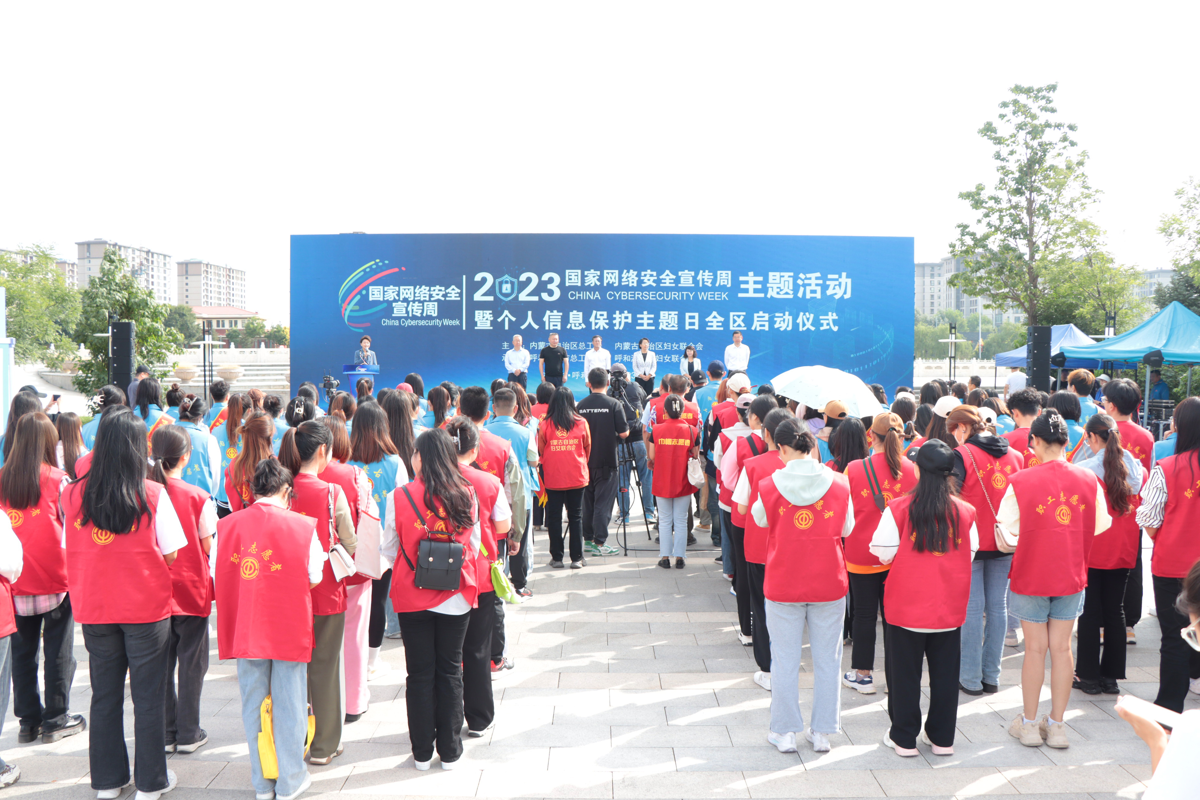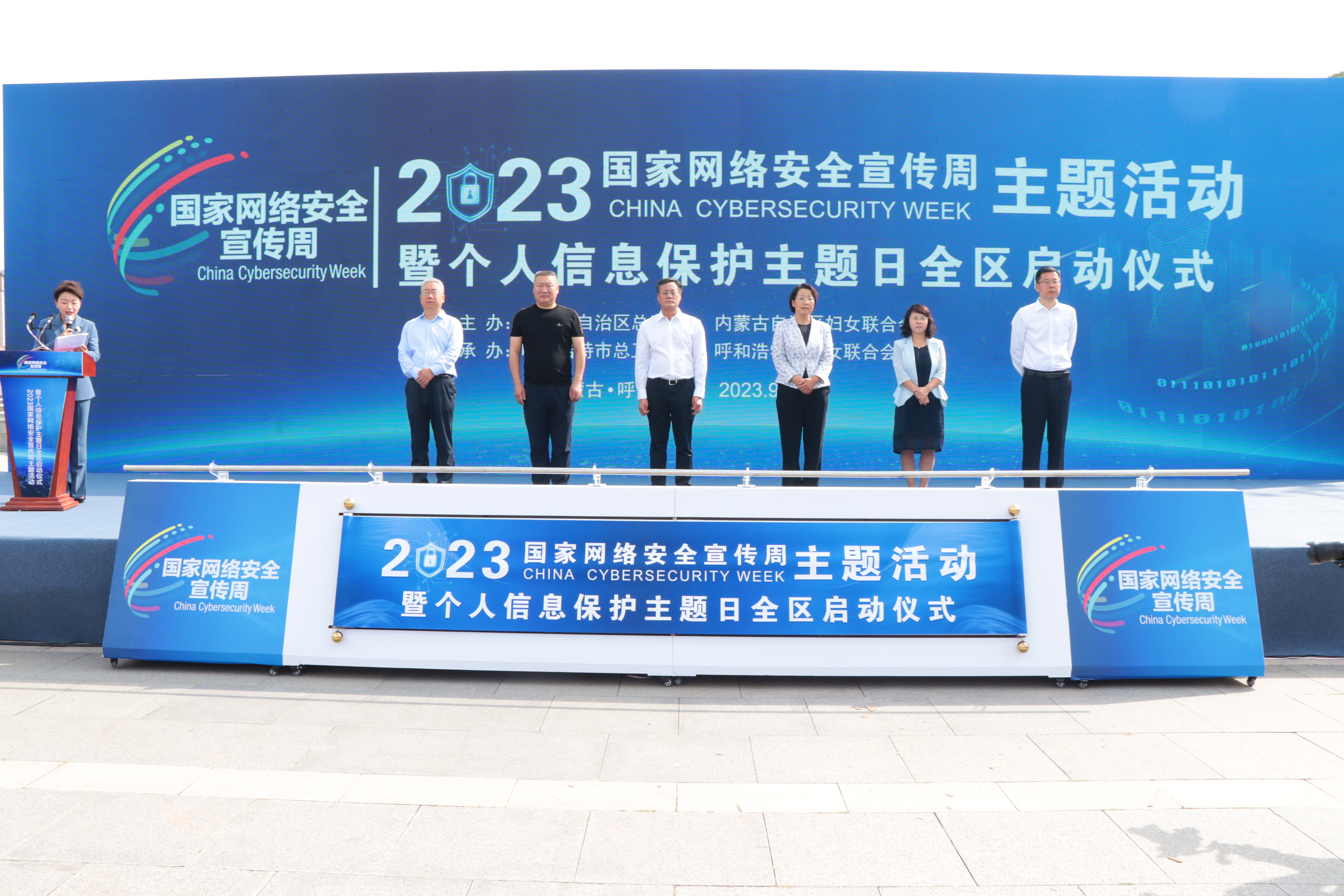 9月17日上午,由自治区、呼和浩特市两级总工会与妇联共同举办的2023年国家网络安全宣传周主题活动暨个人信息保护主题日全区启动仪式在劳动公园举行。自治区总工会党组成员、副主席包铁强,自治区妇联党组成员、副主席郭静丽,自治区网信办副主任李殿刚,呼和浩特市总工会党组书记、副主席汪俊亭,呼和浩特市网信办副主任李斌,呼和浩特市妇联党组成员、副主席李淑军出席启动仪式。