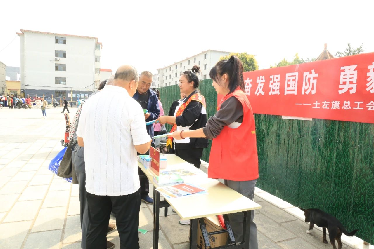 9月14日,以“踔厉奋发强国防 勇毅前行向复兴”为主题的土左旗“全民国防教育月”宣传活动启动仪式在原旗政府广场举行。土左旗总工会积极组织参加启动仪式,并开展搭设工会政策宣传台。