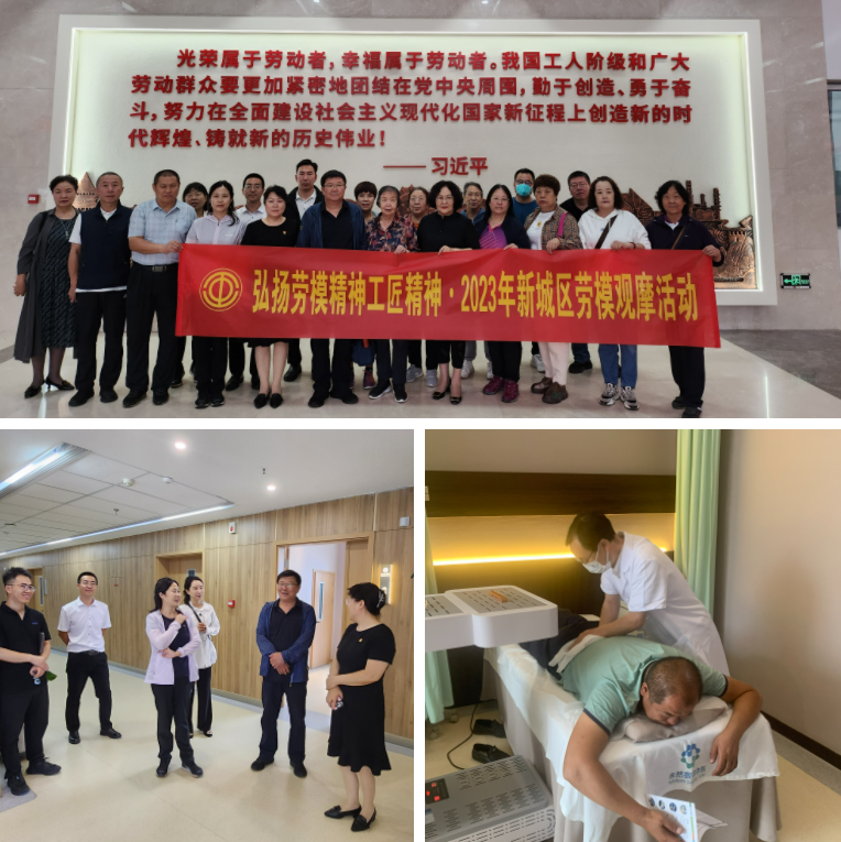 随后,工作组同两级劳模们前往内蒙古工人疗养院参观学习,疗养院院长姝瑛、副院长孙凯陪同参观。工作组详细了解了疗养院发展历程及当前状况,实地参观了体检中心、康复中心和疗休养区,深度体验了手指检测、艾灸、高压氧舱等理疗服务项目,对疗休养阵地的服务项目表示高度赞赏。