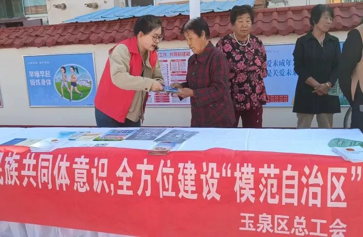 活动中,玉泉区总工会工作人员通过悬挂条幅、设立宣传咨询点、发放宣传册等多种形式大力宣传党的民族团结知识、民族政策、民族法律法规。此次活动,共发放《内蒙古自治区促进民族团结进步条例》《铸牢中华民族共同体意识应知应会》等宣传册120余份,接待咨询50余人。