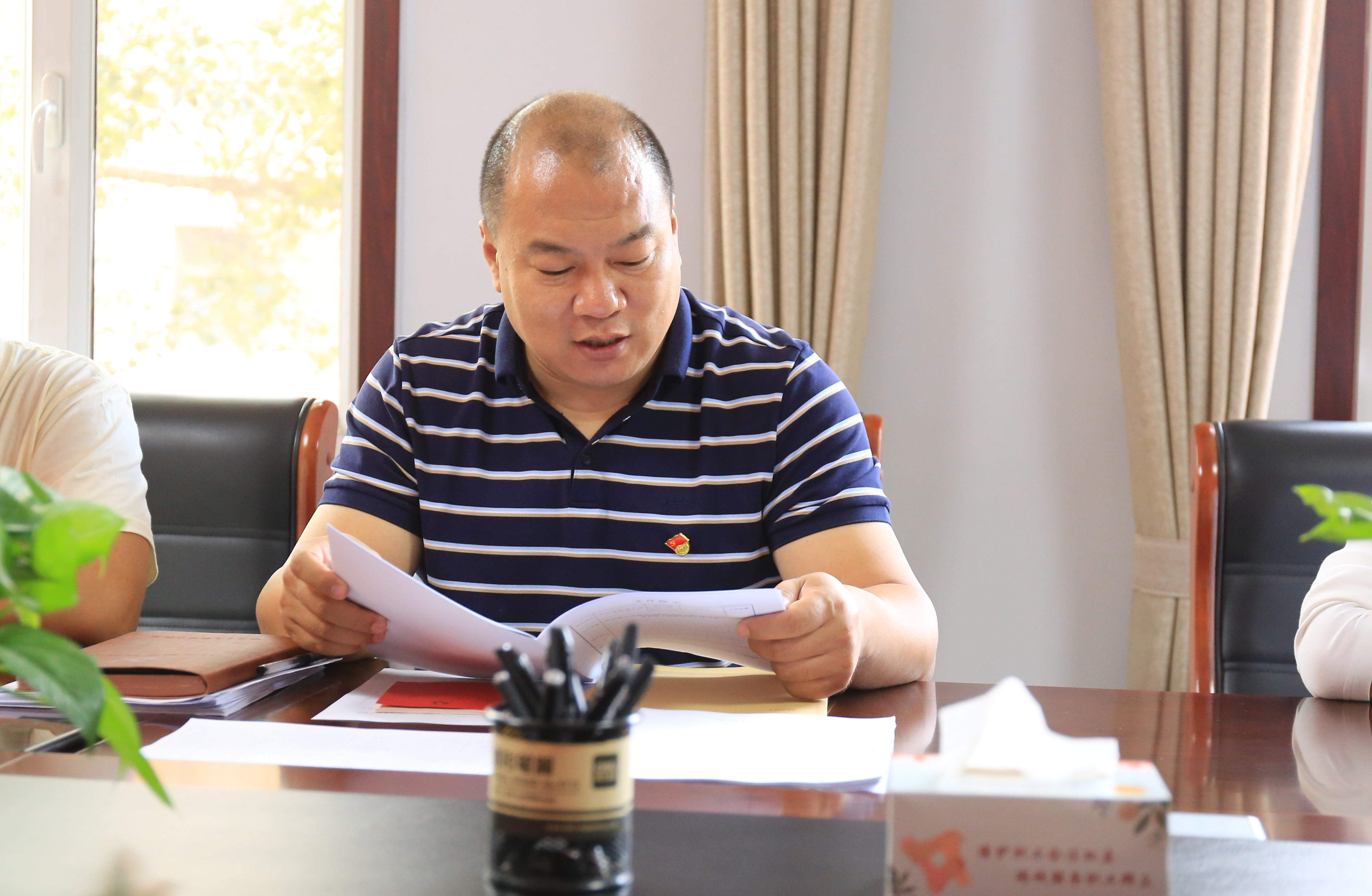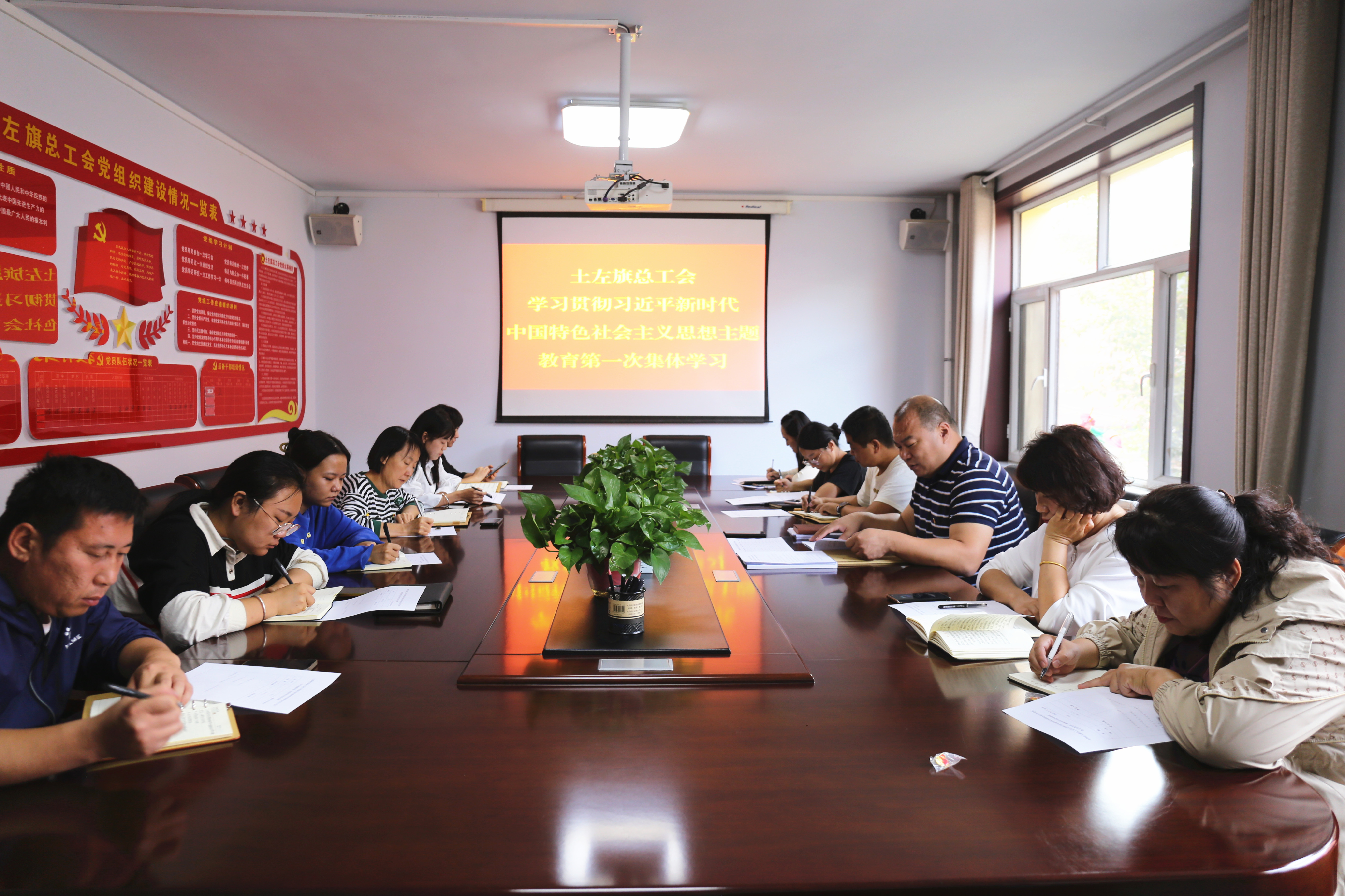 9月20日,土左旗总工会党组书记、常务副主席伊赫在二楼会议室主持召开学习贯彻习近平新时代中国特色社会主义思想主题教育第一次集中学习会议,机关全体党员干部职工参加会议。