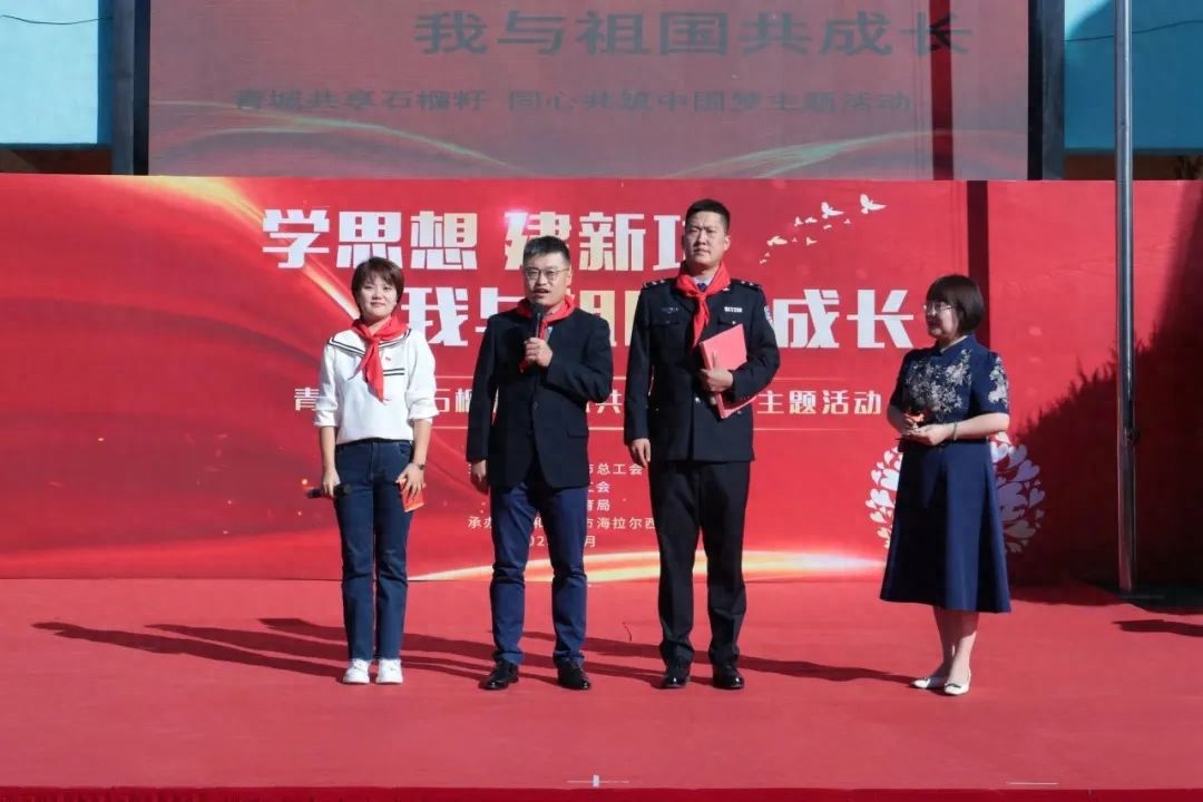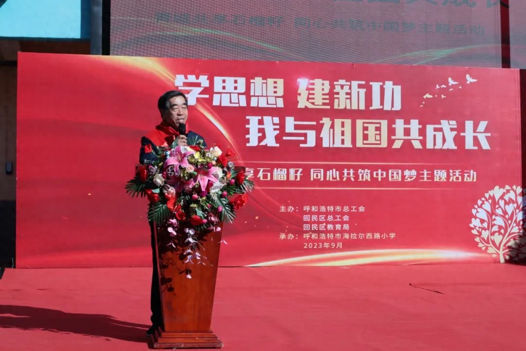 为进一步将主题教育延伸至学校,加强爱国主义教育、民族团结进步教育,增加学生爱国热忱,培育学生良好的爱国情操,铸牢中华民族共同体意识,9月28日,在国庆节来临之际,市总工会在海拉尔西路小学举办“学思想 建新功 我与祖国共成长--青城共享石榴籽 同心共筑中国梦”主题活动。市人大常委会副主任、总工会主席云玉美,市总工会党组成员、副主席云娜参加活动。