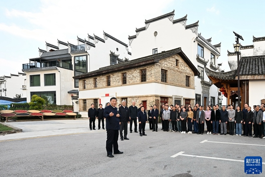 10月10日至13日,中共中央总书记、国家主席、中央军委主席习近平在江西考察。这是11日下午,习近平在上饶市婺源县秋口镇王村石门自然村考察时,同村民们亲切交流。新华社记者 谢环驰 摄