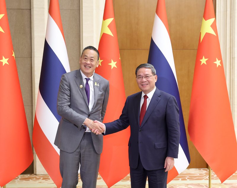 李强表示,中泰是亲密友好邻邦。习近平主席去年访问泰国,双方宣布构建更为稳定、更加繁荣、更可持续的中泰命运共同体,赋予中泰友谊新的时代内涵。中方愿同泰方坚持睦邻友好,在涉及彼此核心利益问题上坚定相互支持,以高质量共建“一带一路”为主线,带动各领域合作不断迈上新台阶、收获新成果。
