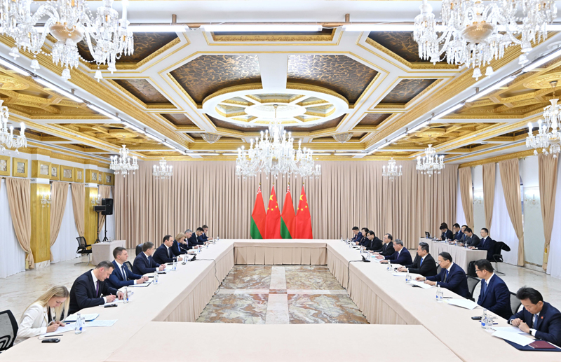 李强表示,近年来,在习近平主席和卢卡申科总统的战略引领下,中白关系实现跨越式发展。中方愿同白方一道,落实两国元首重要共识,推动“一带一路”倡议与白方经济社会发展战略更深入对接,共同建设好中白工业园等重点项目,深挖服务贸易、科技创新等领域合作潜力,加强人文合作,推动中白全天候全面战略伙伴关系不断走深走实。双方要加强在上合组织等多边机制内的沟通协作,为地区及世界和平、稳定与发展作出更大贡献。