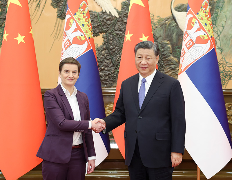 习近平指出,不久前武契奇总统来华出席第三届“一带一路”国际合作高峰论坛,这次总理女士来华出席第六届中国国际进口博览会,体现了塞方对中国人民的真诚友好和对发展对华关系的坚定信念。中国和塞尔维亚是历经风雨、患难与共的“铁杆朋友”。两国关系历史积淀深厚,民意基础牢固,共同利益广泛,合作动力强劲。近年来,双边关系持续高位运行,全面战略伙伴关系内涵日益丰富,务实合作成果丰硕。新形势下,中方愿同塞方一道,推动两国关系高质量发展,更好造福两国人民。