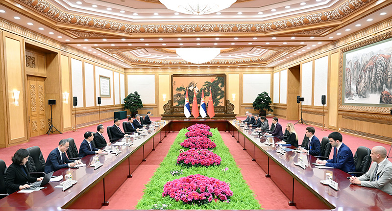 11月6日下午,国家主席习近平在北京人民大会堂会见塞尔维亚总理布尔纳比奇。新华社记者 张领 摄
