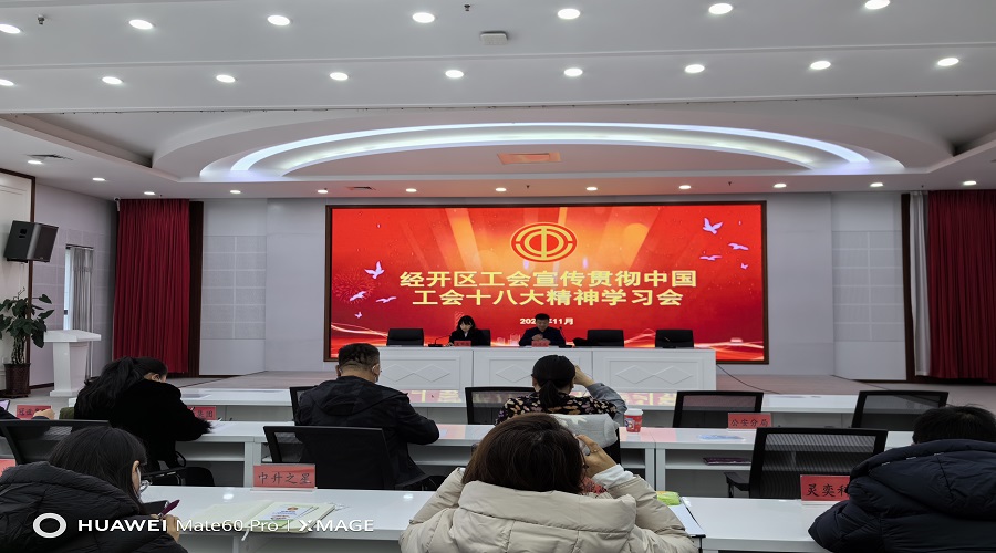 学习会由经开区工会联合会副主席刘浩波领学,会议传达并学习了《中国工会十八大报告》、《习近平同中华全国总工会新一届领导班子成员集体谈话》和《习近平关于工人阶级和工会工作论述摘编》的部分内容。会议指出,中国工会第十八次全国代表大会是在我国迈上全面建设社会主义现代化国家新征程、向第二个百年奋斗目标进军的关键时刻召开的一次十分重要的会议,是一次高举旗帜、凝心聚力、继往开来、团结奋进的大会,意义重大而深远。