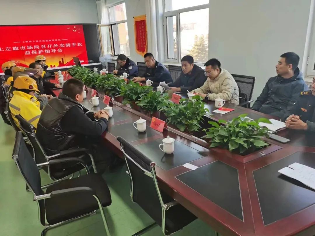 为促进平台持续健康发展和新就业形态劳动者队伍稳定,加强源头参与维护新就业形态劳动者的合法权益,土左旗总工会、旗市场监管局、旗公安局、旗人社局共同召开外卖骑手权益保护指导会。