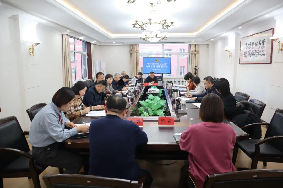 在随后的座谈会上,葛智敏一行听取了呼和浩特市总工会组织引领全市各级工会组织围绕铸牢中华民族共同体意识、融入大统战格局开展各项工会工作的情况汇报。葛智敏充分肯定了呼和浩特市总工会近年来在统战工作上取得的成绩,并就工会如何做好新时代统战工作和铸牢中华民族共同体意识提出四点希望。一是要进一步发挥工会联系职工群众的桥梁和纽带作用,传递新时代党的统一战线工作的重要思想和民族工作的思想。深入开展民族团结进步创建“八进”工作,通过做好思想政治引领、服务保障职工等工会工作进一步凝聚人心,不断提升新时代首府职工的向心力;二是要整合有效资源和工作力量,发挥统战工作作用。加强党对群团组织的全面领导,着力将统战工作和工会工作互相融合、互相促进,继续发挥团结新的社会阶层人士的工作优势,充分调动工会组织的力量,丰富“红石榴驿站”的服务职能和建设,共同做好党外人士的选树和培养教育,推动各项工作走深走实,合力在“聚人心”上下功夫;三是要紧扣铸牢中华民族共同体意识这条主线,落实到工会各项工作的全过程各环节。要做好结合和融入的工作,切实把突出主线、结合中心与开展工会工作有机统一起来,把增强各族职工群众的获得感、幸福感作为铸牢中华民族共同体意识的切入点和着力点。充分挖掘、用好劳模和工匠等职工优秀代表,用身边人身边事和群众语言讲好民族团结进步故事,弘扬正能量,唱响主旋律;四是要发挥首府工会工作优势,走在前、作表率。呼和浩特市总工会要坚持党对工会的全面领导,在引导工会干部和广大职工群众铸牢中华民族共同体意识上,在动员工会干部和广大职工群众积极投身高质量完成习近平总书记交给内蒙古的“五大任务”和全方位建设“模范自治区”这两件大事上,在组织工会干部和广大职工群众汇聚推进“强首府”工程智慧和力量上,始终走在前、作表率。