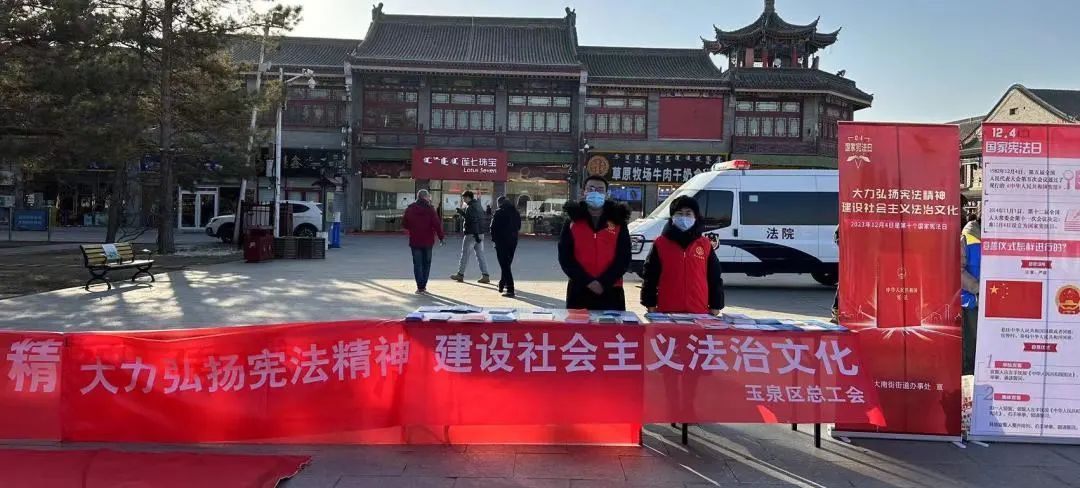 今年12月4日是第十个“国家宪法日”,为全面贯彻落实党的二十大精神,大力弘扬宪法精神,掀起学习宣传宪法的热潮,12月4日上午,玉泉区总工会在大召广场开展“大力弘扬宪法精神,建设社会主义法治文化”宪法宣传日宣传活动。