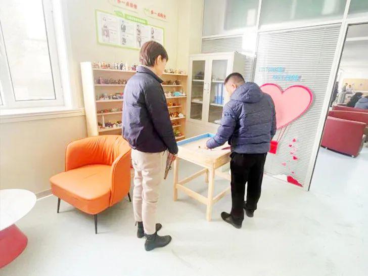 职工秦先生最近感觉工作压力较大,心情很烦躁,总是乱发脾气,希望通过和心理老师的沟通交流,改变现在的状态。郝老师听完他的倾诉后,引导其进行“摸沙”,帮助他放下焦虑,适当缓解压力。随后郝老师邀请秦先生击打宣泄器械进行情绪放松,鼓励他尝试着用积极的态度看待问题,让自己走出消极情绪。在郝老师的积极引导下,秦先生脸上露出了久违的笑容。