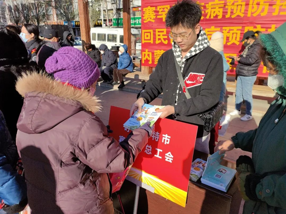 活动现场,赛罕区总工会工作人员向群众发放了艾滋病防治宣传折页,大力宣传艾滋病防护知识,提高大家对艾滋病的关注和预防意识,有效预防艾滋病的传播。