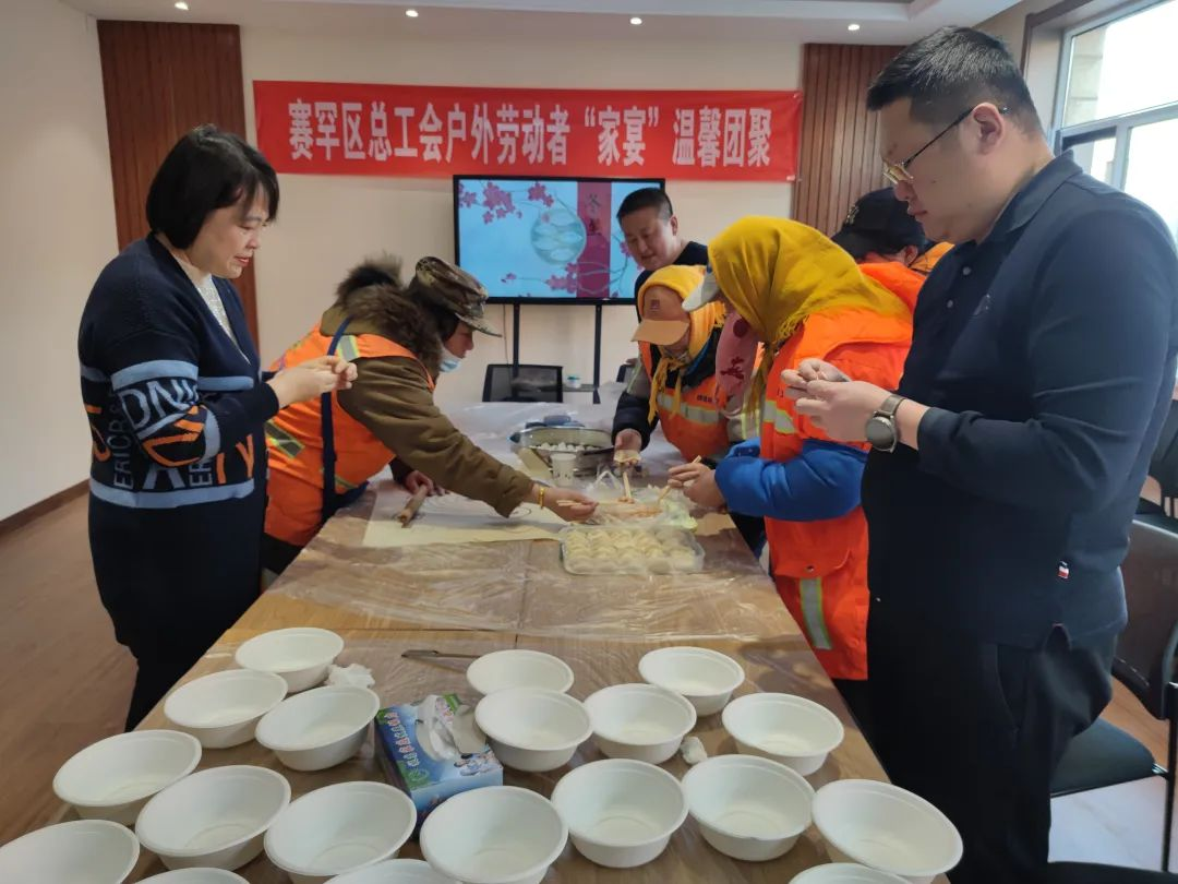 随后,在劳动者港湾举行了关爱户外劳动者美食家宴活动,现场齐动手包饺子,请户外劳动者吃一顿热乎乎的饺子家宴,让他们感受到“家”的温暖,感谢他们在寒冷的冬天里默默无闻的坚守。