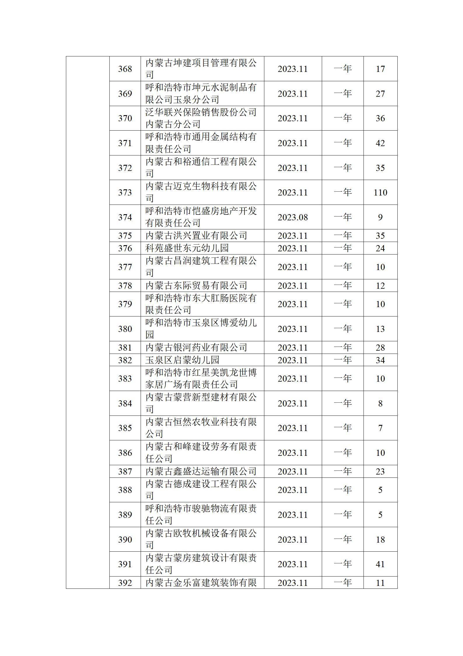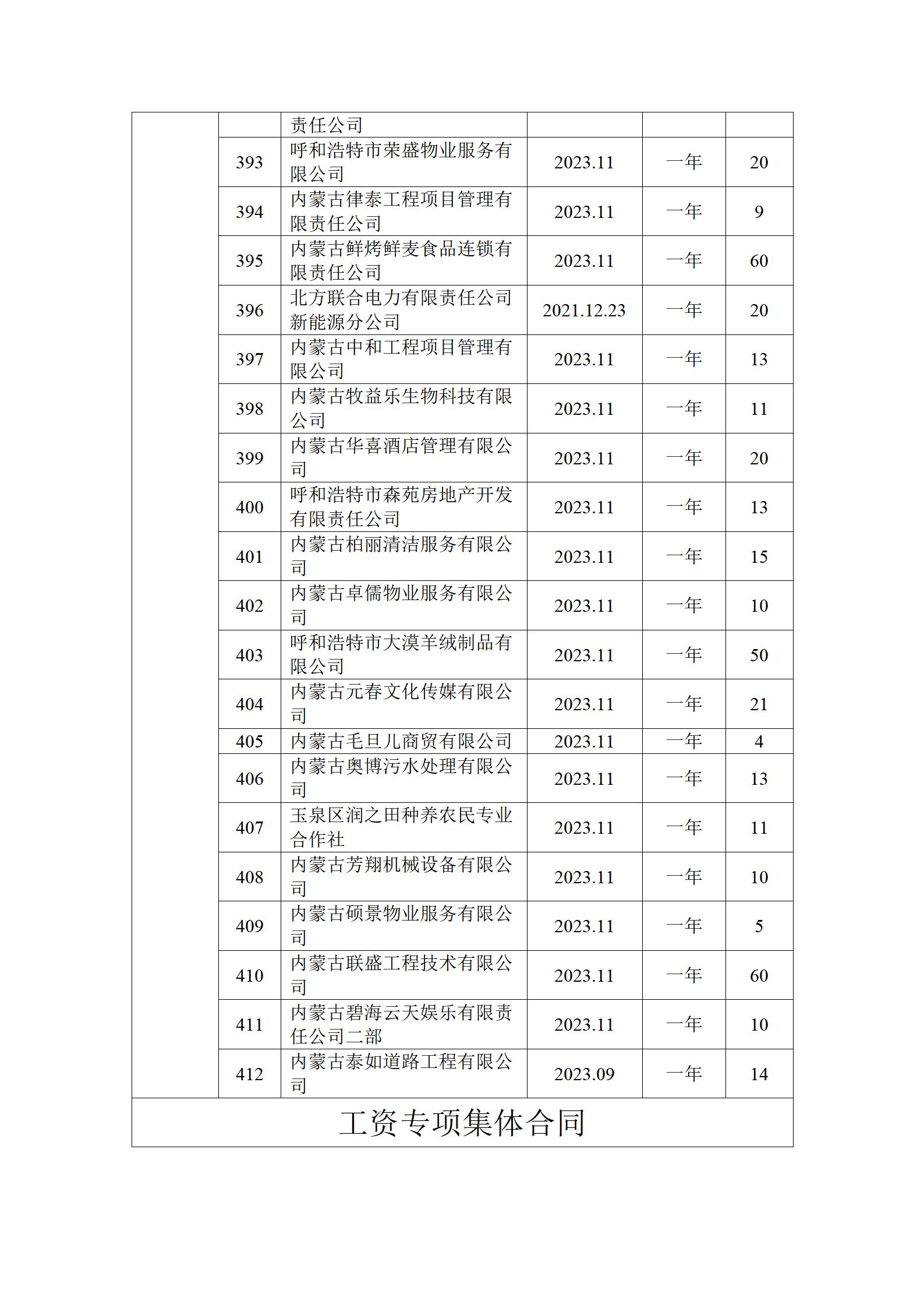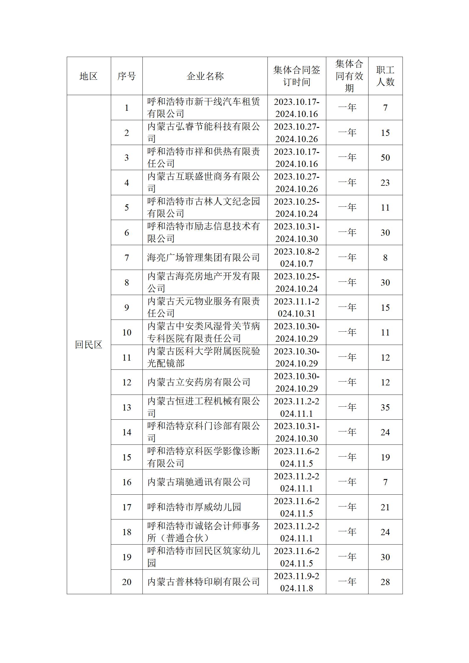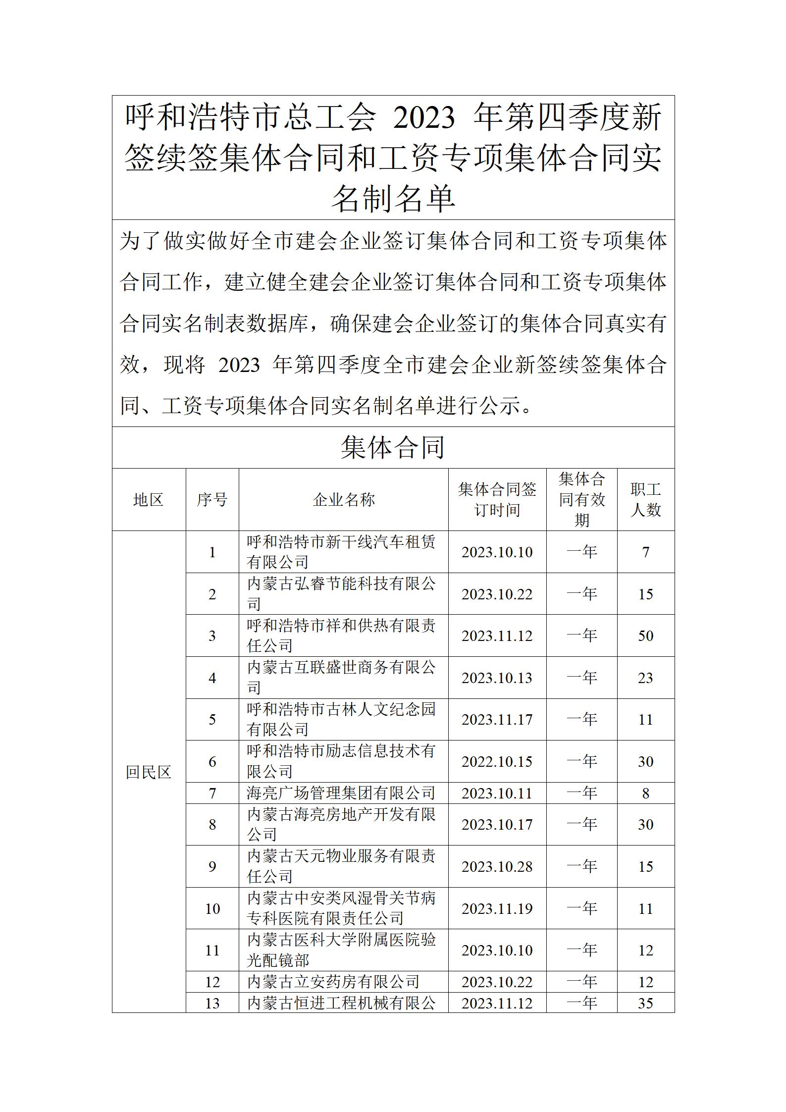 呼和浩特市总工会2023年第四季度新签续签集体合同和工资专项集体合同实名制名单
