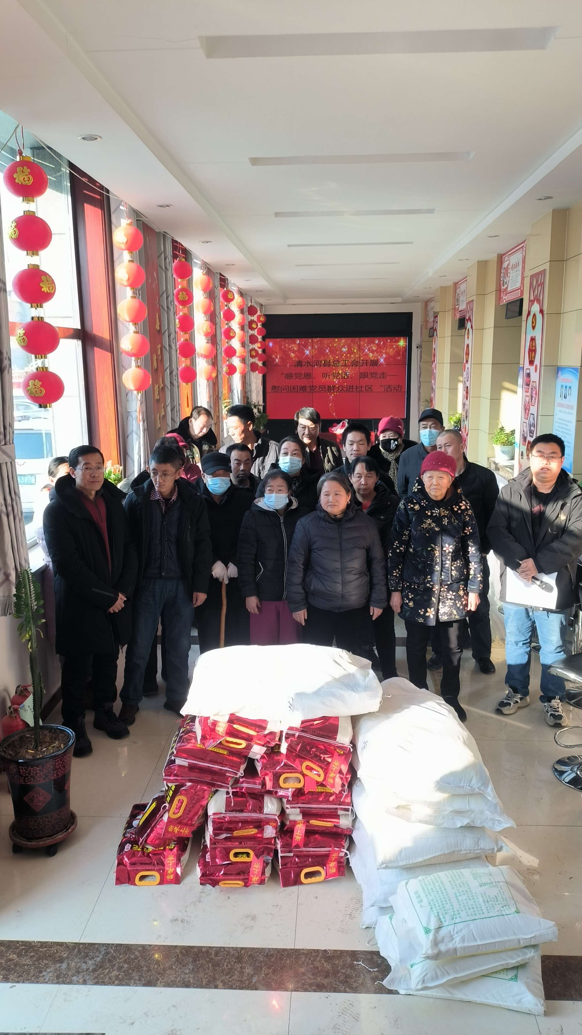为深入开展学习贯彻习近平新时代中国特色社会主义思想主题教育,牢牢把握“学思想、强党性、重实践、建新功”的总要求,12月27日,清水河县总工会深入帮扶结对南园社区组织开展“ 感党恩 听党话 跟党走——慰问困难党员群众进社区”慰问活动。将党委政府和工会组织的关怀和温暖送到他们心中。