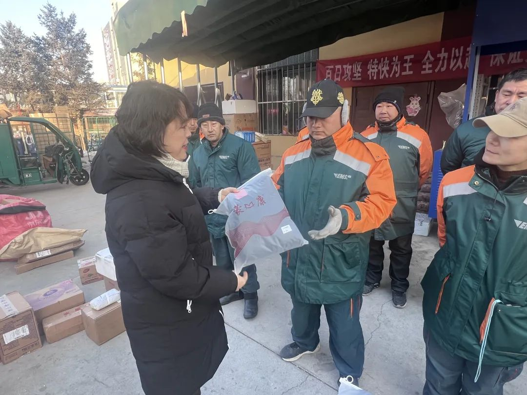 1月4日上午,赛罕区总工会党组成员、副主席刘剑,赛罕区总工会工作人员一行来到邮政户外劳动者服务站点慰问投递员工作者,为他们送去保暖棉裤。