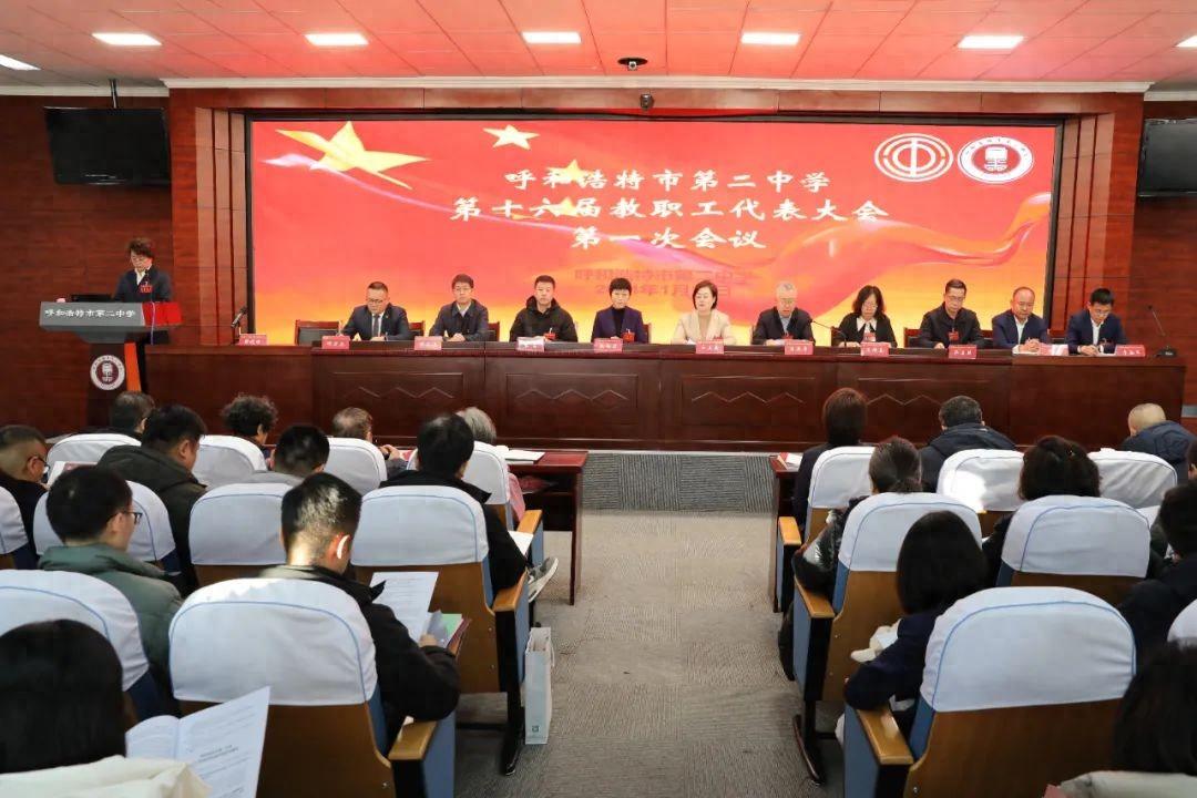 1月15日,呼和浩特市第二中学第十六届教职工代表大会隆重召开,呼和浩特市人大常委会副主任、总工会主席云玉美,呼和浩特市总工会党组书记、副主席汪俊亭出席会议,学校各部门职工代表参加会议。