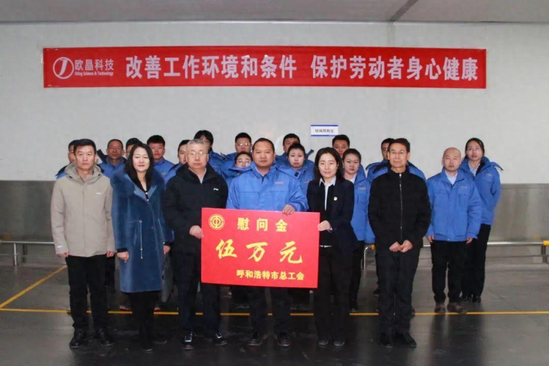 1月24日,呼和浩特市总工会党组书记、副主席汪俊亭一行深入中环产业园区开展“送温暖”走访慰问活动暨2024年全市劳动和技能竞赛启动工作调研,呼和浩特市总工会经济部部长刘冬梅、呼和浩特市能源化工机械制造工会主席田喜武参加慰问。
