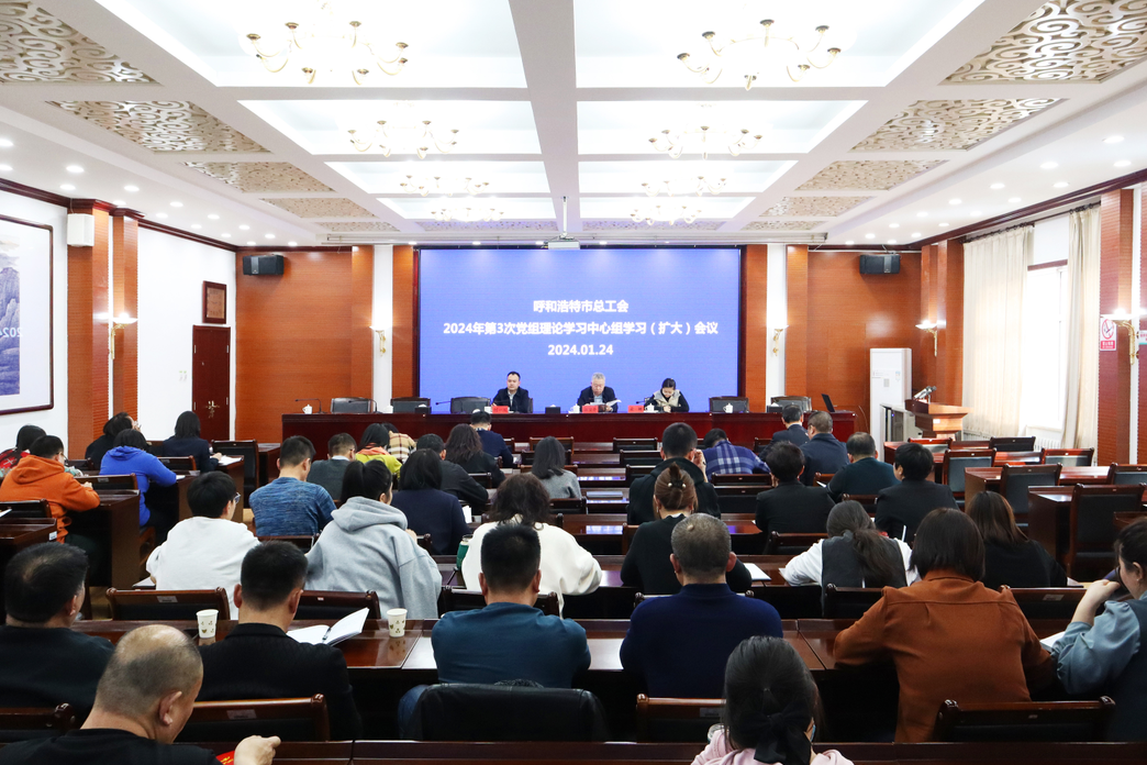 1月24日下午,呼和浩特市总工会召开2024年第3次党组理论学习中心组学习(扩大)会议。呼和浩特市总工会党组书记、副主席汪俊亭主持会议。