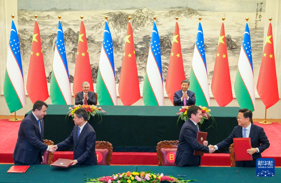 1月24日下午,国家主席习近平在北京人民大会堂同来华进行国事访问的乌兹别克斯坦总统米尔济约耶夫举行会谈。会谈后,两国元首签署并发表了《中华人民共和国和乌兹别克斯坦共和国关于新时代全天候全面战略伙伴关系的联合声明》。新华社记者 殷博古 摄