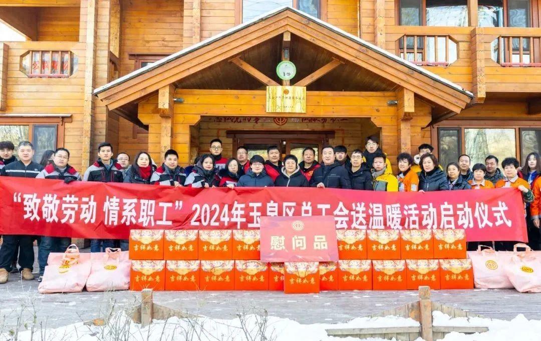 ▲玉泉区总工会在劳动者港湾举办2024年度“致敬劳动 情系职工”主题送温暖慰问活动启动仪式,为新就业形态劳动者和环卫工人发放新春大礼包和防寒保暖四件套等慰问品,并与新就业形态劳动者们一起喝奶茶、写福字、聊家常