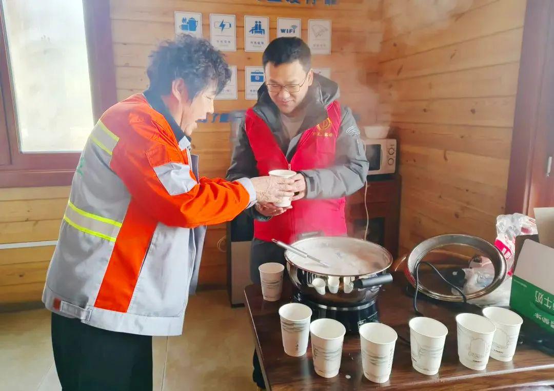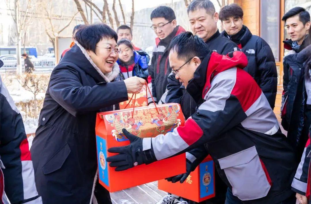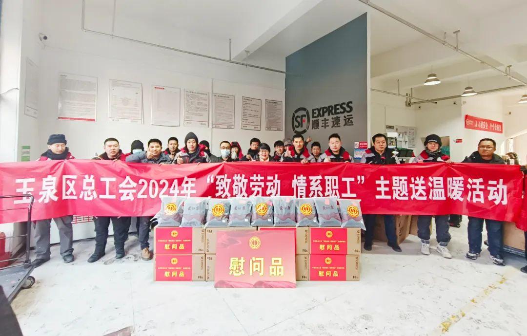 ▲玉泉区总工会为快递员、网约车司机等新就业形态劳动者送去防寒保暖物资和新年祝福