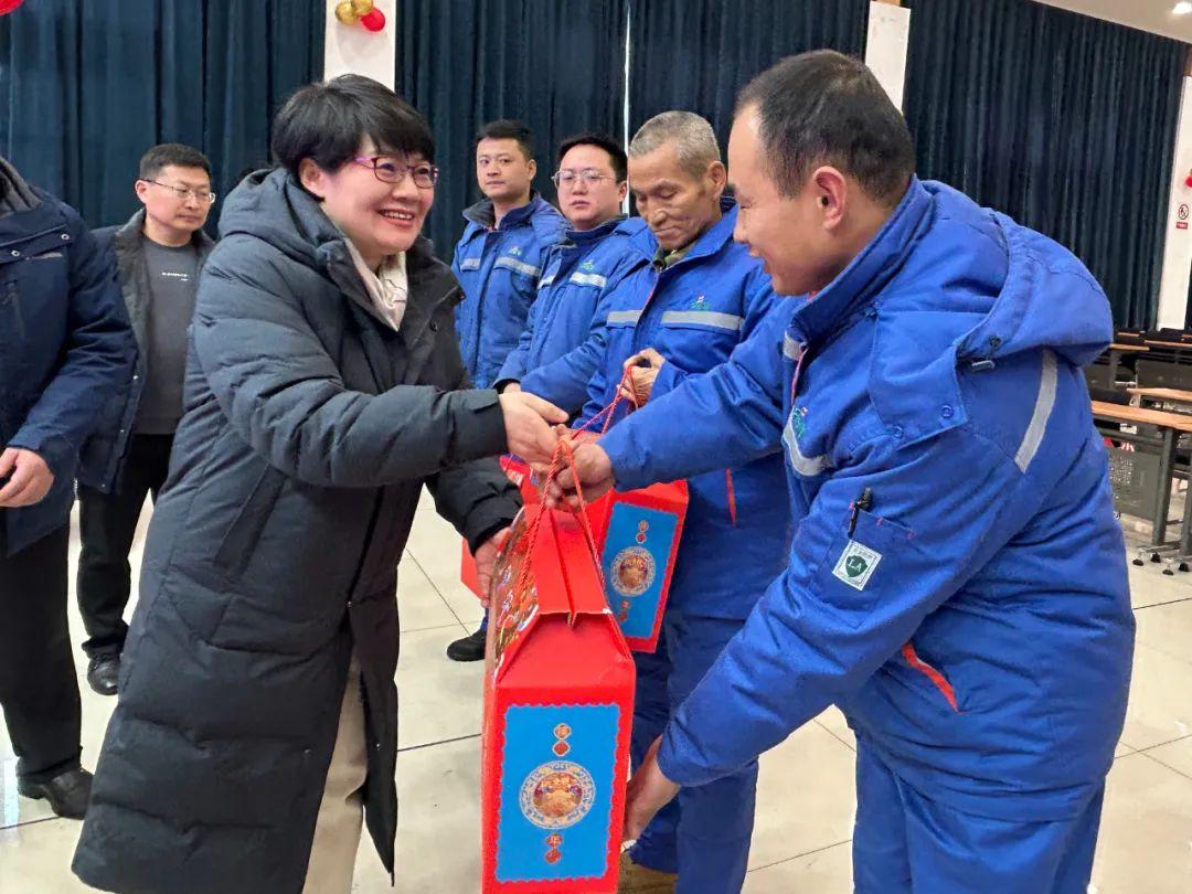 ▲玉泉区总工会先后深入内蒙古阜丰生物科技有限公司、内蒙古华亿建筑工程有限公司、呼和浩特市万锦物业服务有限公司、内蒙古鲜烤鲜麦食品连锁有限责任公司、内蒙古安娜传媒有限公司等20余家区属企业走访慰问,为职工群众送去米、面、油、保暖裤、水果、新年大礼包等慰问品