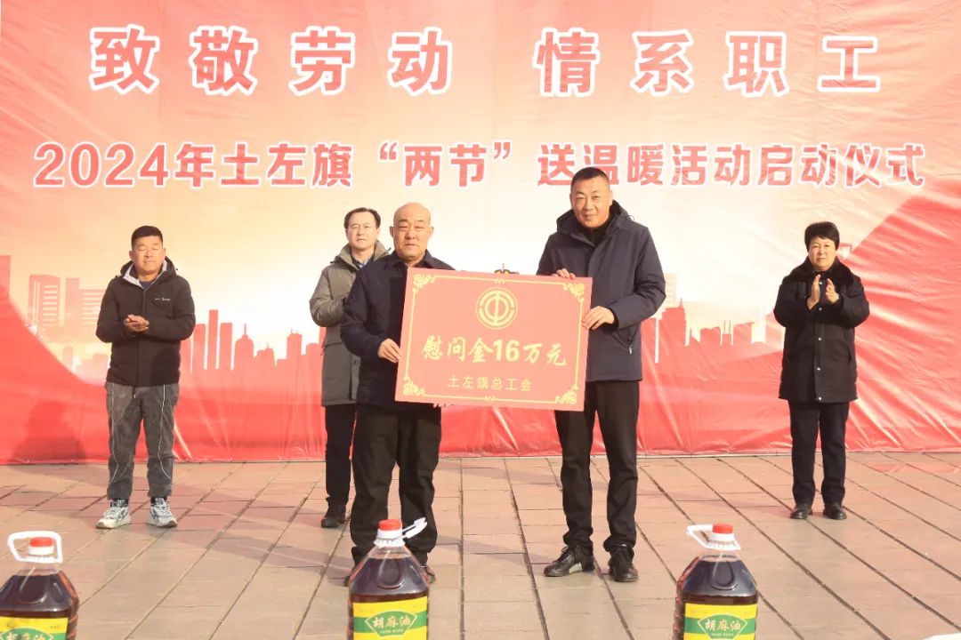 ▲土左旗2024年“两节”送温暖活动启动仪式在原人民政府广场举行,土左旗总工会对全旗环卫工人进行慰问,发放16万元慰问金和200余份慰问品