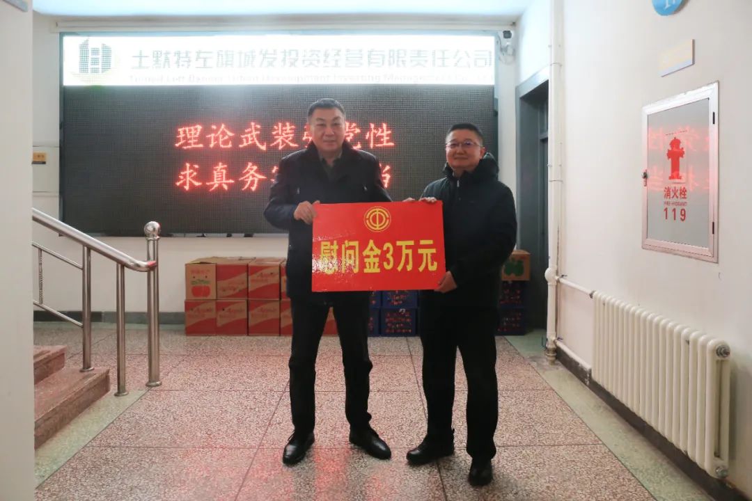 ▲土左旗总工会深入土左旗城投供水有限责任公司、土左旗阿勒坦农牧业发展投资有限责任公司、土左旗城发投资经营有限责任公司走访慰问,为他们送去慰问金