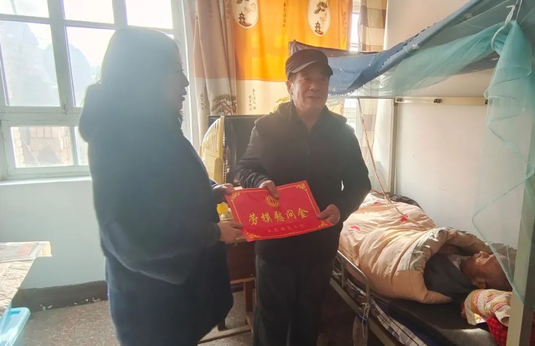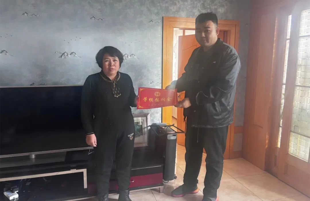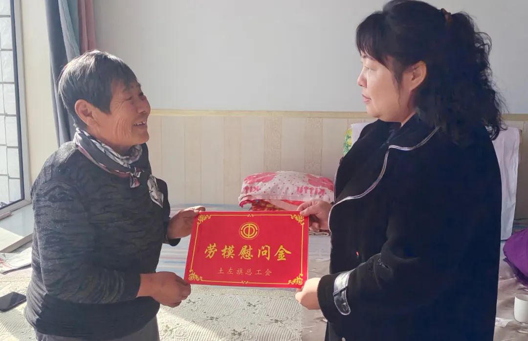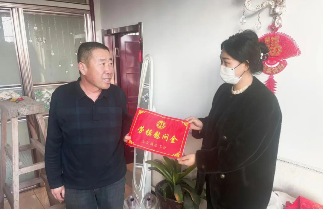 ▲土左旗总工会开展走访慰问各行业劳动模范活动,与他们进行面对面、心贴心交流,仔细询问、用心倾听劳模及家人工作、生活和身体情况,并为他们送去慰问金