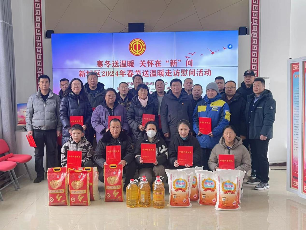 临近新春佳节,为进一步做好新就业群体的服务和保障工作,增强新就业群体的获得感和归属感,2月4日,新城区总工会联合民进内蒙古区直综合三支部、四支部、爱心企业内蒙古中泽建设管理有限公司、佰宜佰宸建筑工程有限公司组织开展新春慰问新就业形态劳动者群体活动,为还在岗位上辛勤劳动的新就业形态劳动者群体送上工会的温暖关怀。新城区总工会党组书记、常务副主席云东升带队慰问,送上了米面油、春联等慰问物资。
