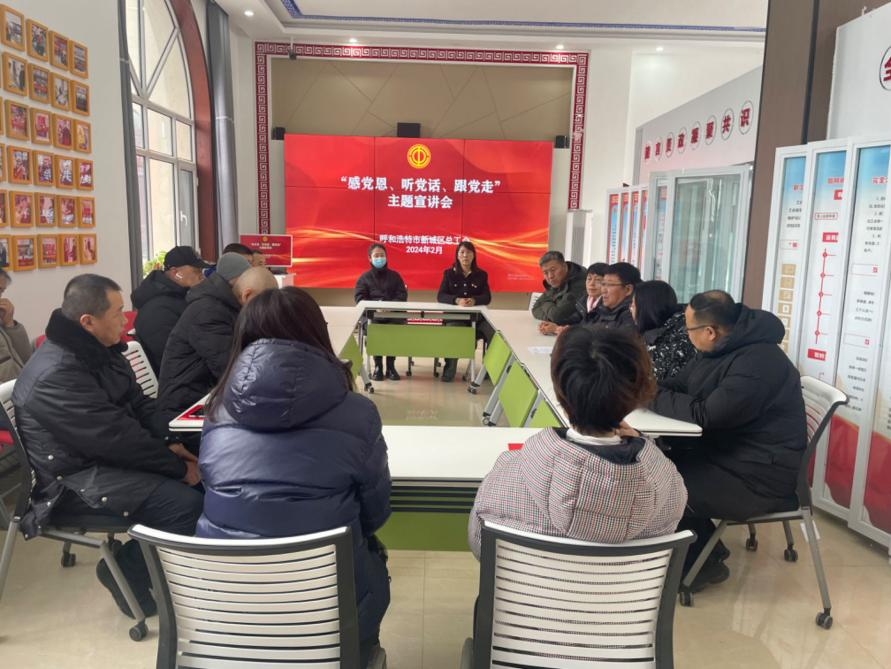为学懂弄通做实习近平新时代中国特色社会主义思想的“民族篇”“内蒙古篇”,扎实开展“感党恩、听党话、跟党走”群众教育实践活动,2月4日,呼和浩特市新城区总工会党组书记、常务副主席云东升在劳动者港湾为新就业形态劳动者群体代表开展“感党恩、听党话、跟党走”专题党课。