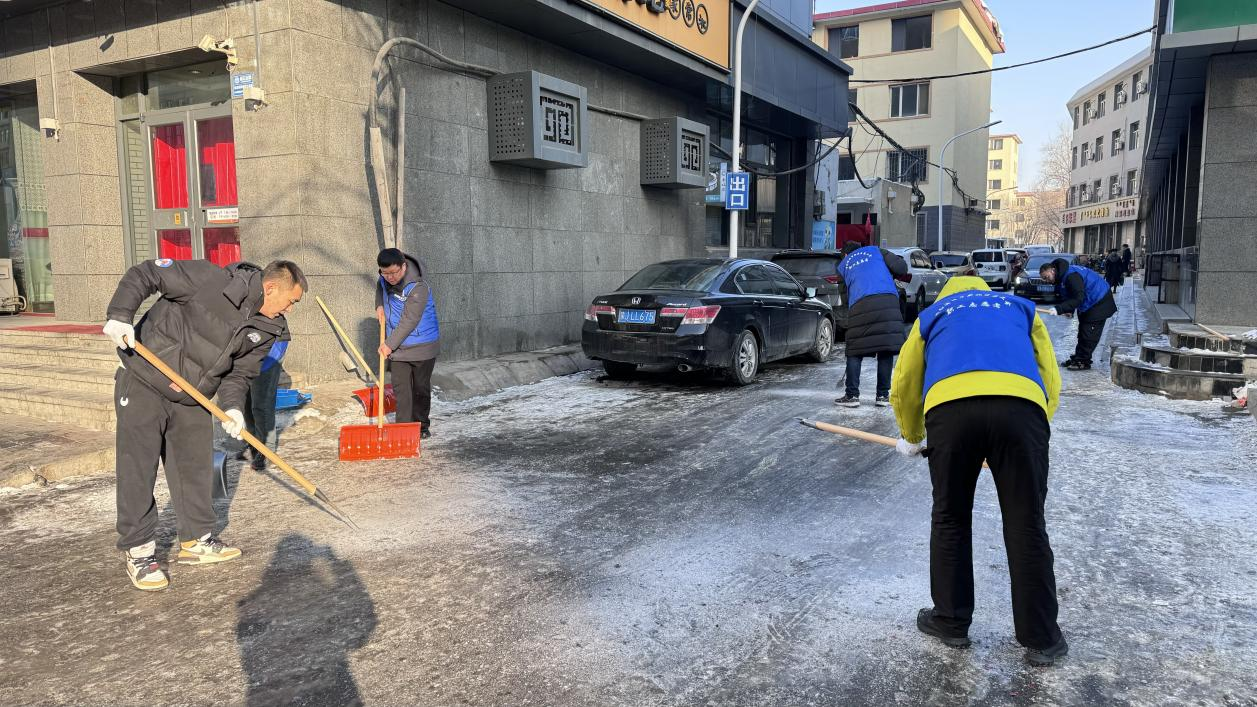 活动现场,党员志愿者身穿统一马甲纷纷拿起扫把、抹布、铁锨等工具,对辖区内的垃圾、积雪进行清理,并向居民群众发放普法、消防等宣传册和宣传品。